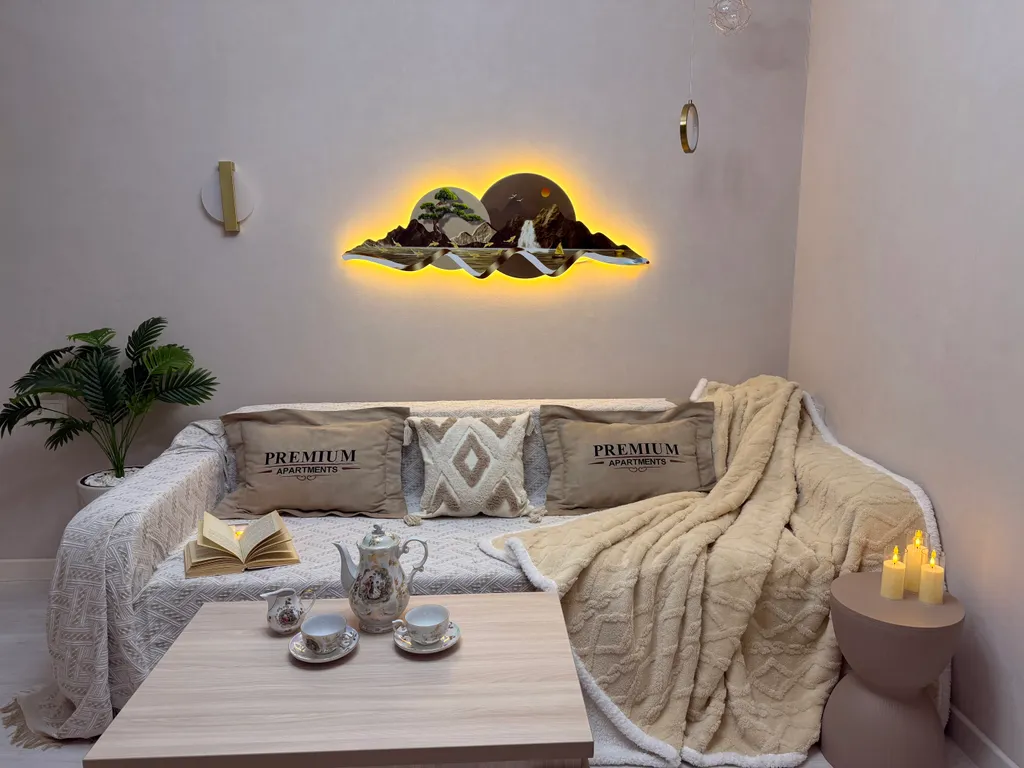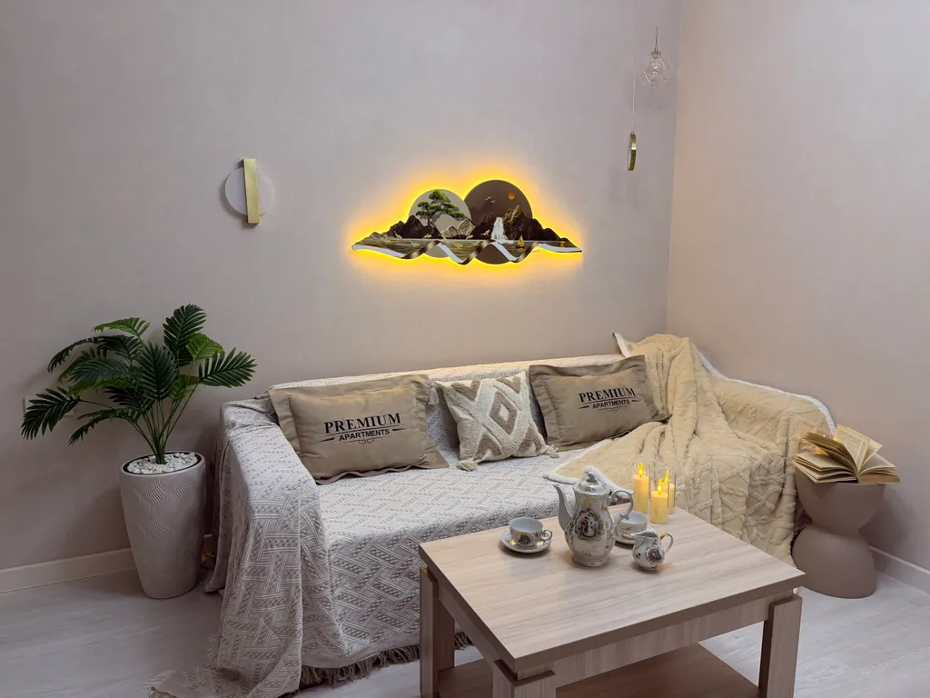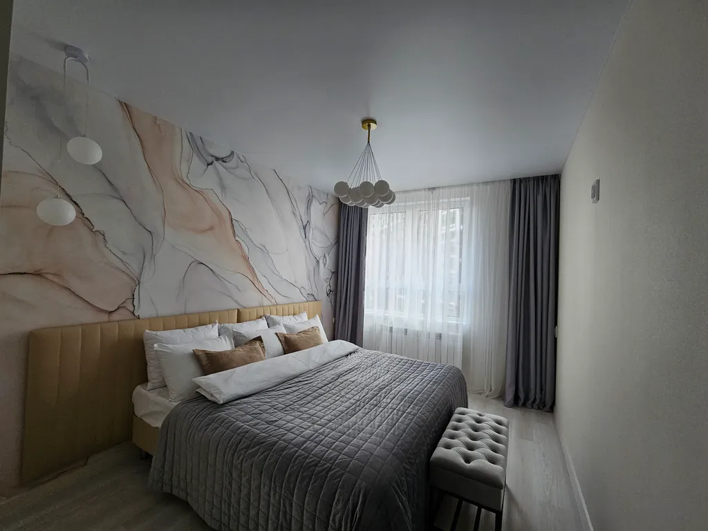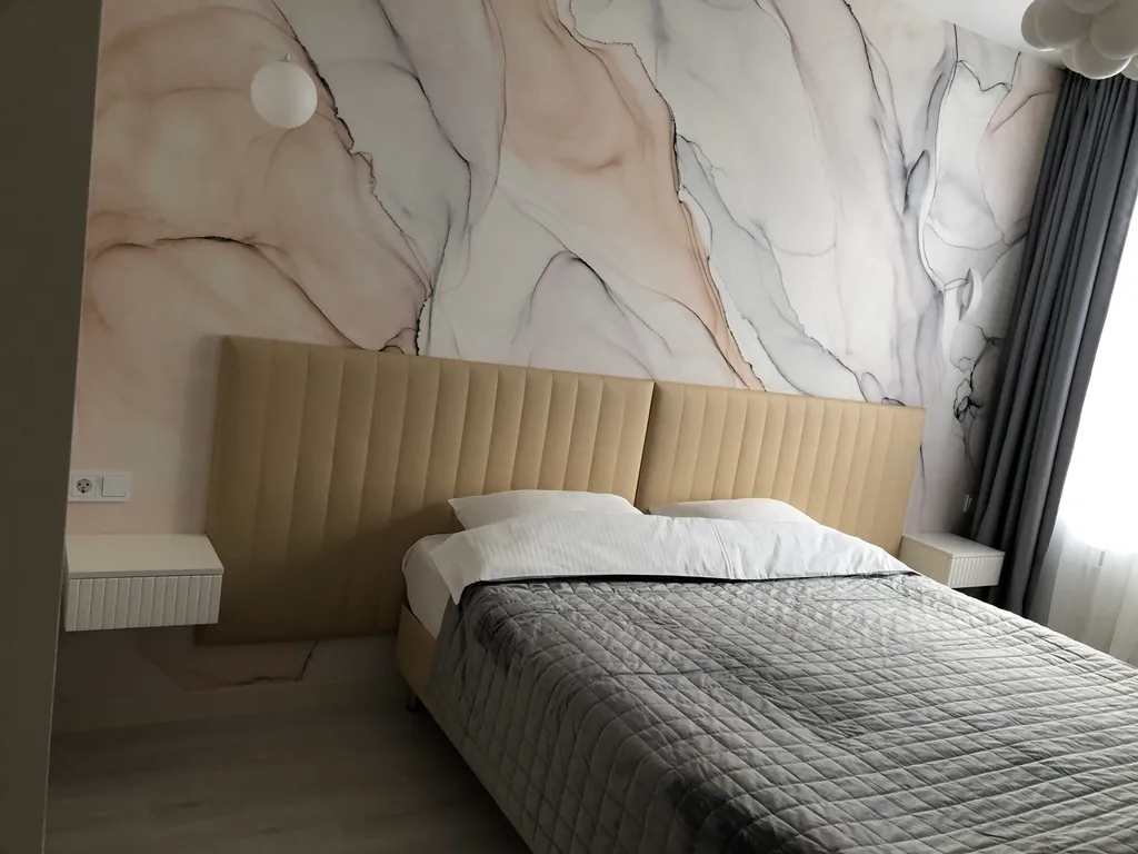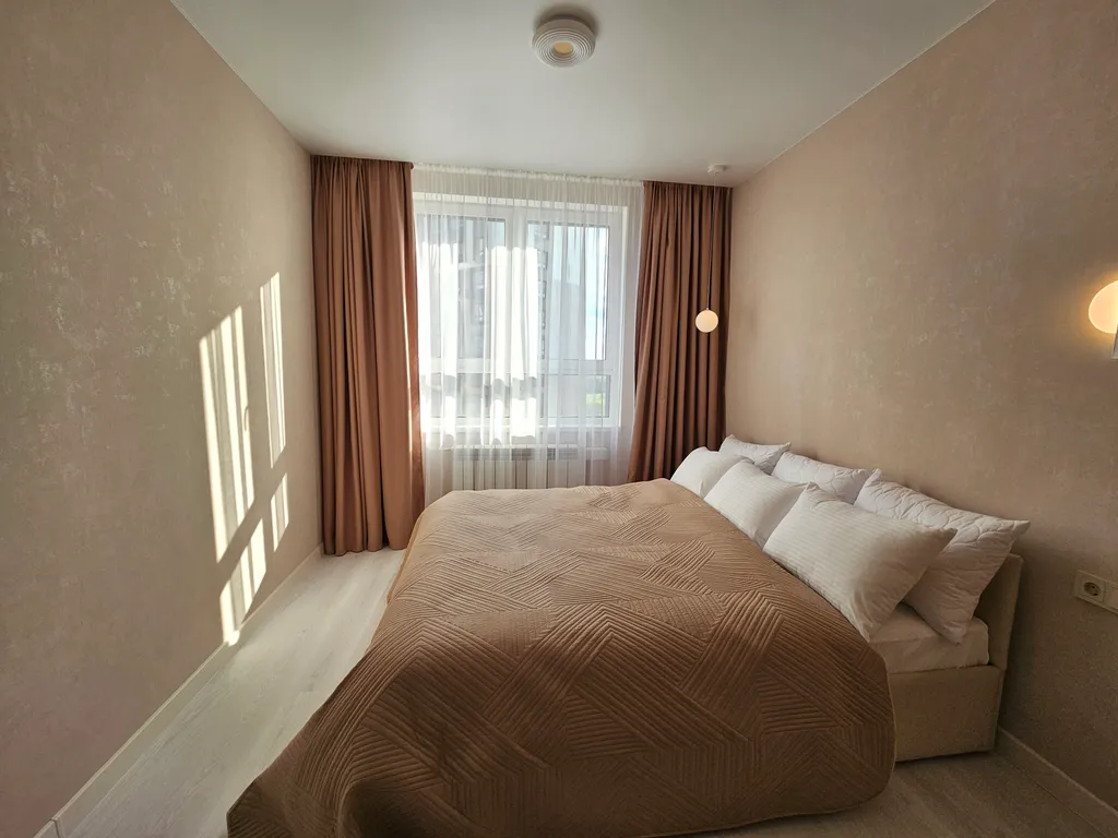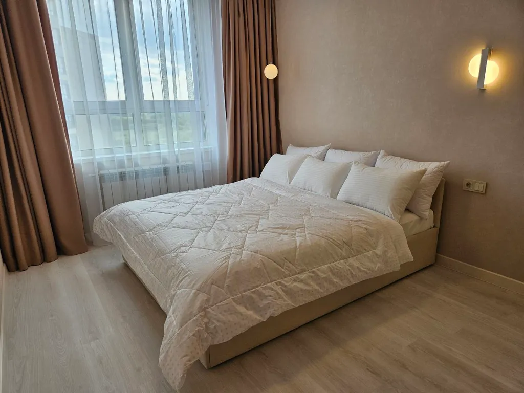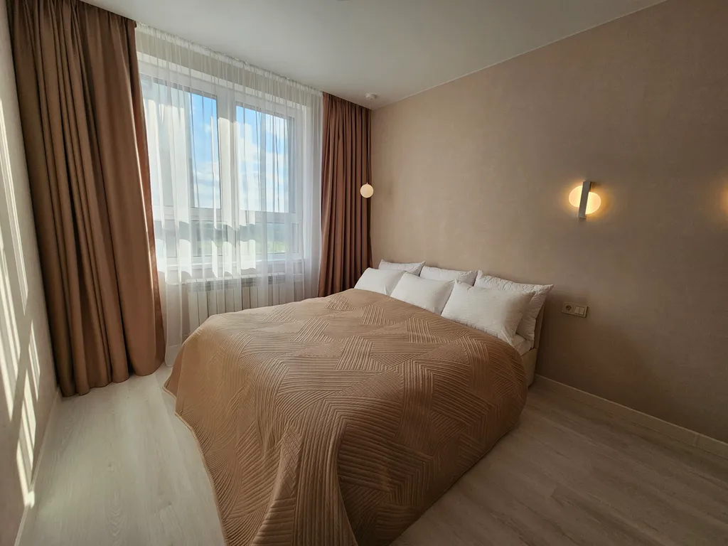 Белоснежное бельё — ваш сон также очень важен для нас. Мы предоставляем чистое и свежевыглаженное бельё, чтобы вы смогли полностью расслабиться и отдохнуть на ортопедическом матрасе люкс. Вас ожидает роскошная кровать размера king-size (180х200) в спальне и удобный диван-кровать (200х180) в гостиной — гарантия спокойного сна и отличного отдыха.