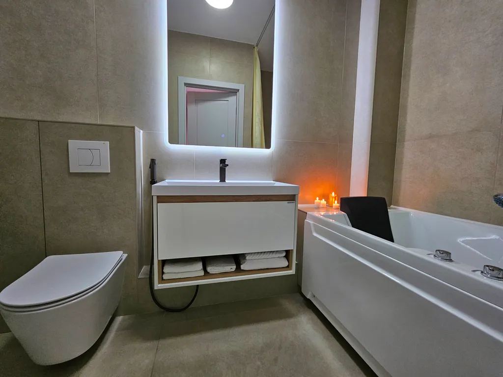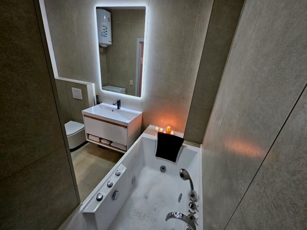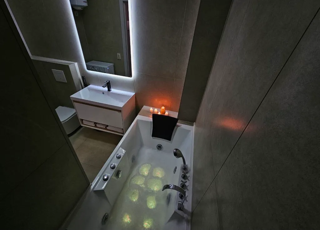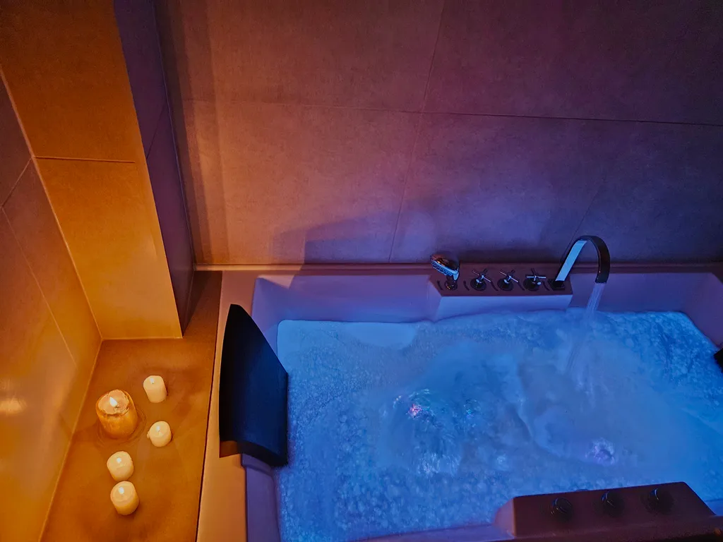 Забудьте о заботах и окунитесь в комфортный мир расслабления. Наша просторная джакузи с гидромассажем и хромотерапией поможет вам погрузиться в релаксацию и наслаждение после насыщенного дня, создавая неповторимую атмосферу.