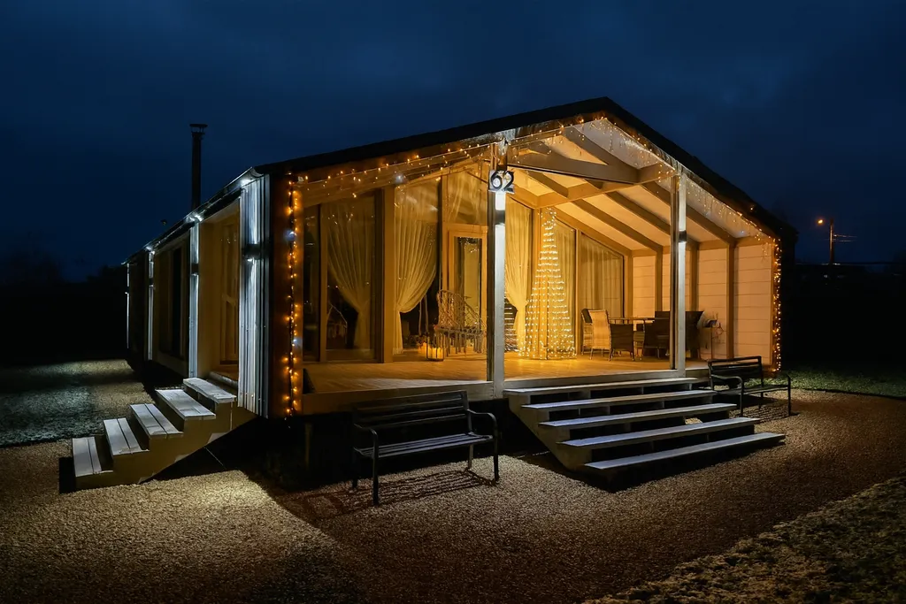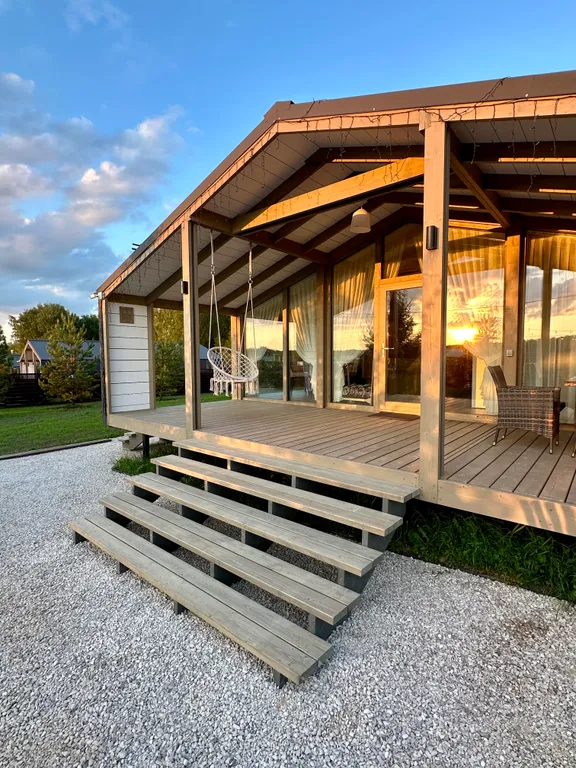 - Уютный и стильный «дубльдом» с камином и просторной террасой.