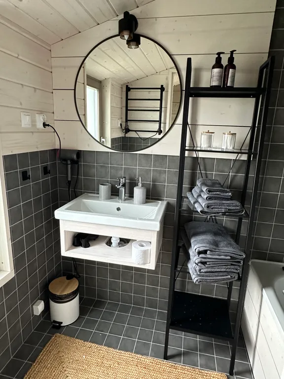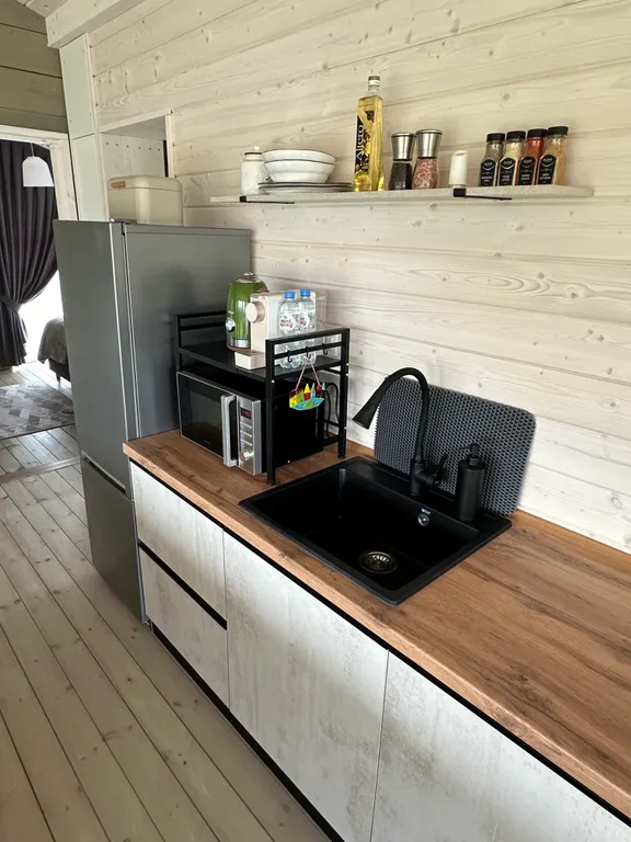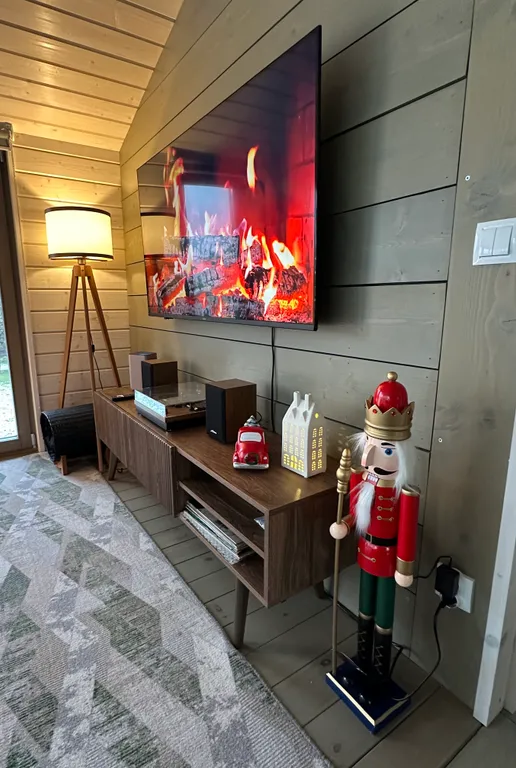 - Дом подходит для отдыха круглый год: электрические конвекторы, кондиционер, камин.