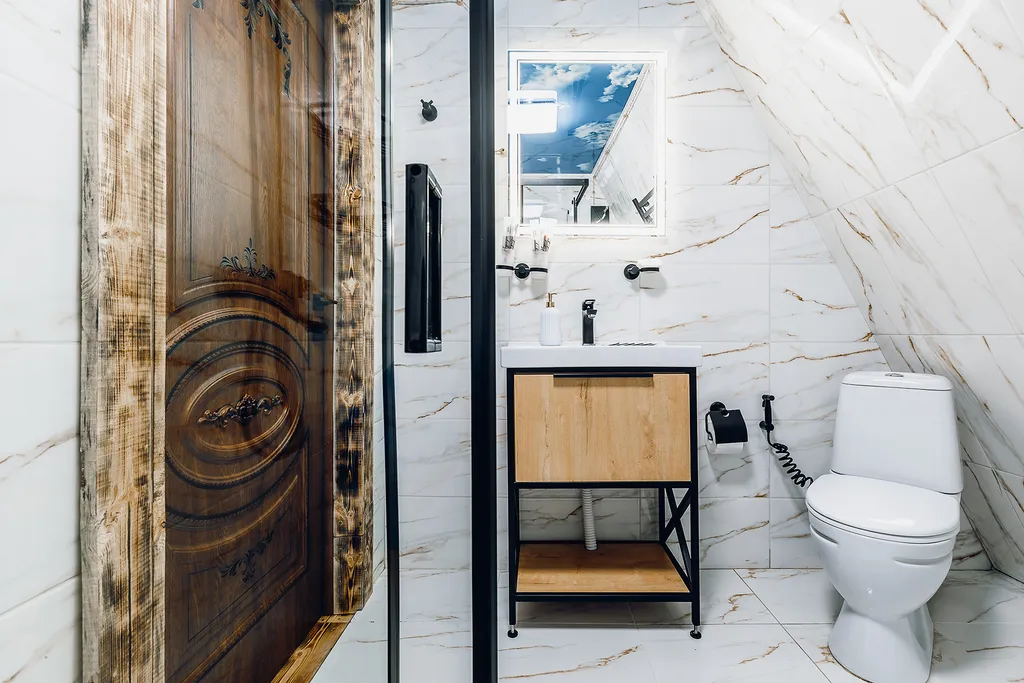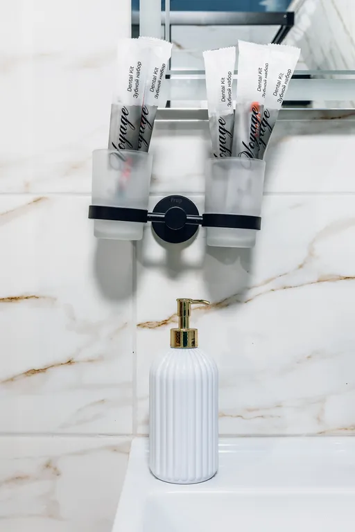 Ванная с душем, стиральная машина, фен, утюг, гладильная доска, тапочки, сушилка, шампунь, мыло.