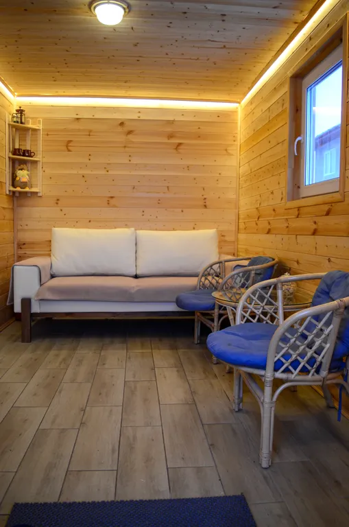 Дом рассчитан на 5 взрослых гостей и 2 детей( 2 спальная кровать, 2 местный диван, кресло-кровать, двухъярусная кровать).