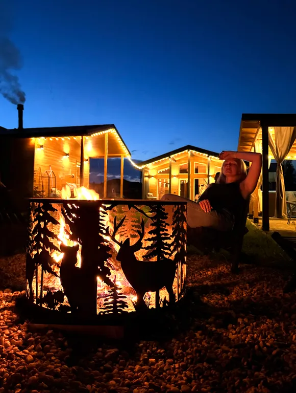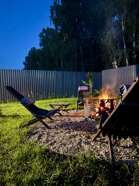 Зона кocтрища, где можно посидеть, укутавшись в плед с кружкой горячего чая, почувствовать тепло огня и перезагрузиться от городской суеты