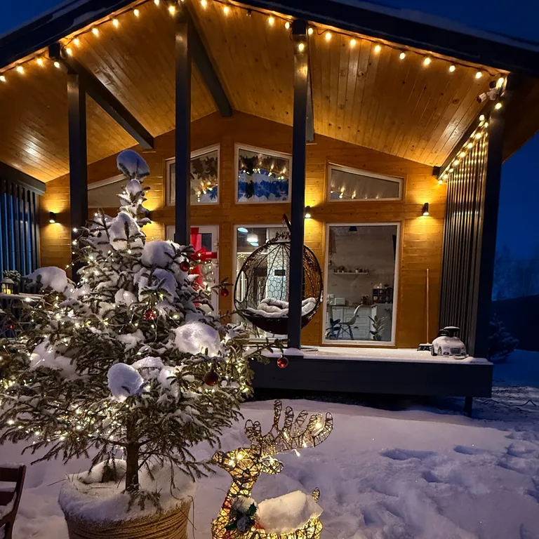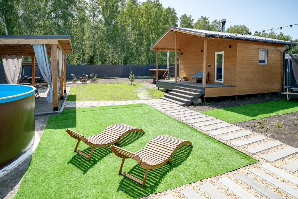 Мангальная зона, зона костровища, баня, чан, уличные гирлянды, беседка, шезлонги