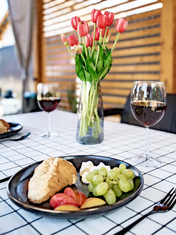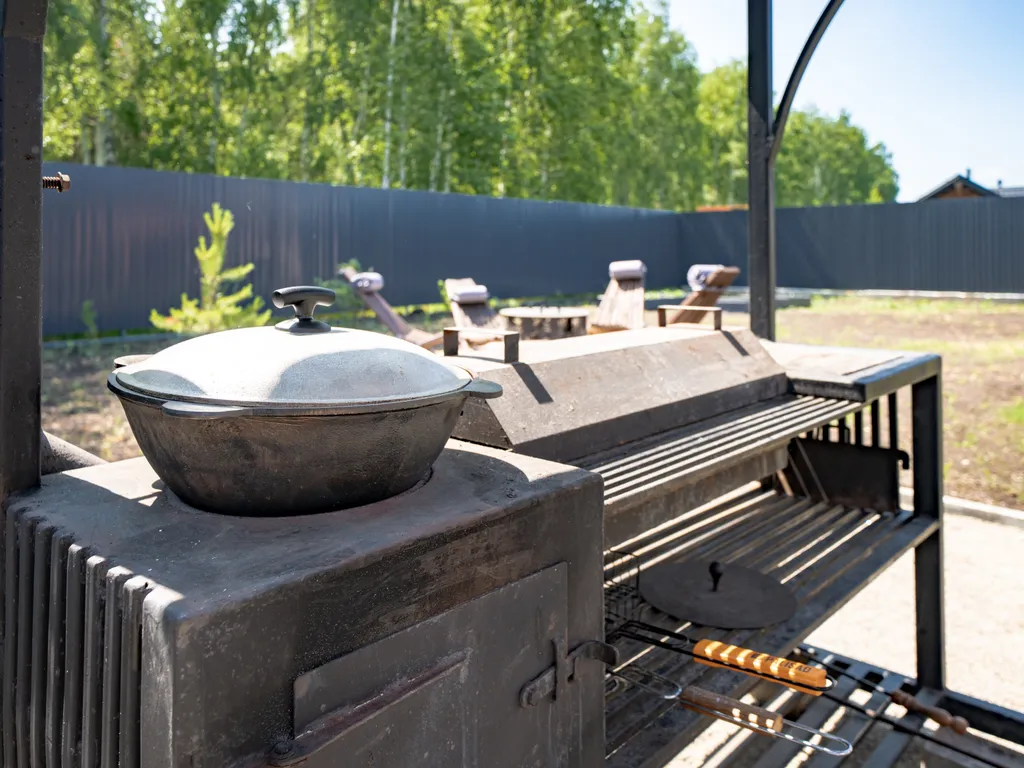 Мангальная зона с решеткой, шампурами и казаном, где вы сможете приготовить самые вкусные блюда! А если не хотите готовить, то можно заказать очень вкусные суши и пиццу с бесплатной доставкой и приятным подарком