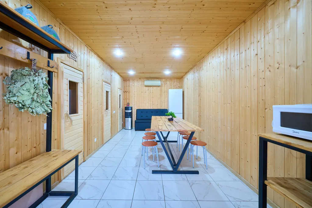 Уют и комфорт: проведите время в нашей комфортабельной беседке, независимо от погоды. Отдохните душой и телом в нашей уютной баньке с последующим купанием в горячей купели с захватывающим видом на реку и закат.