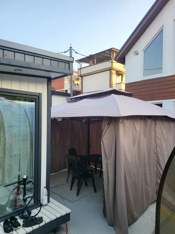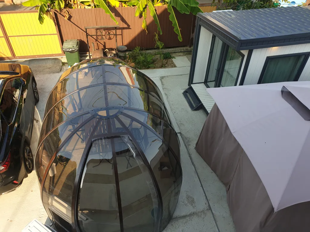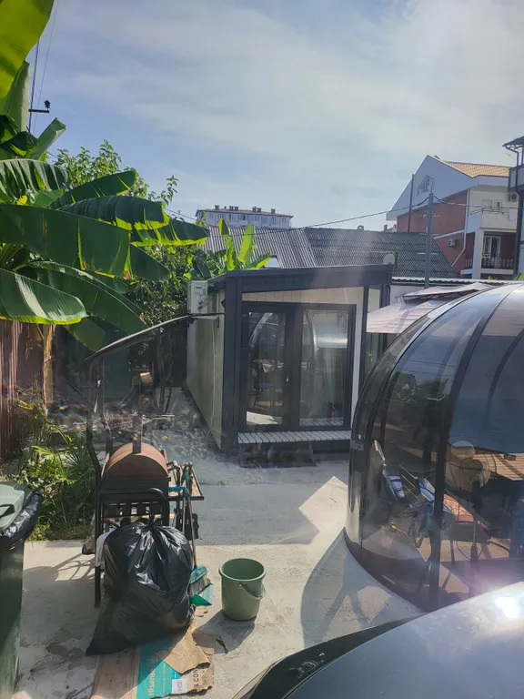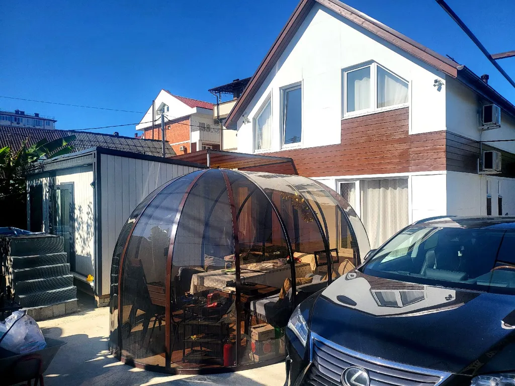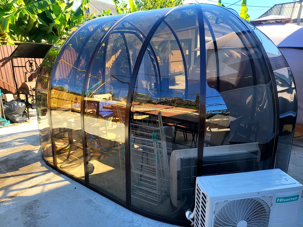 а) купольная беседка с телевизором, кондиционером и колонкой для караоке.