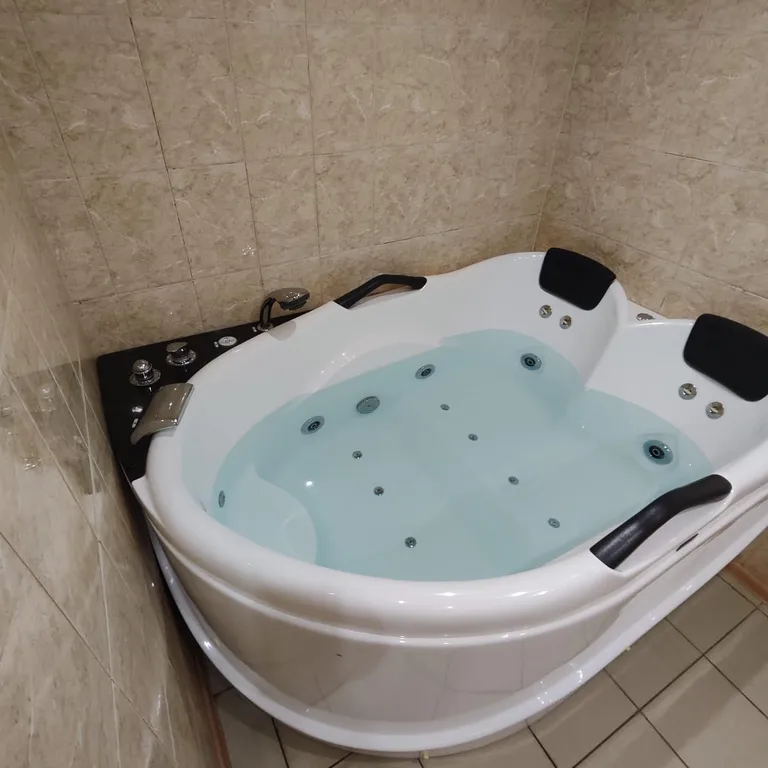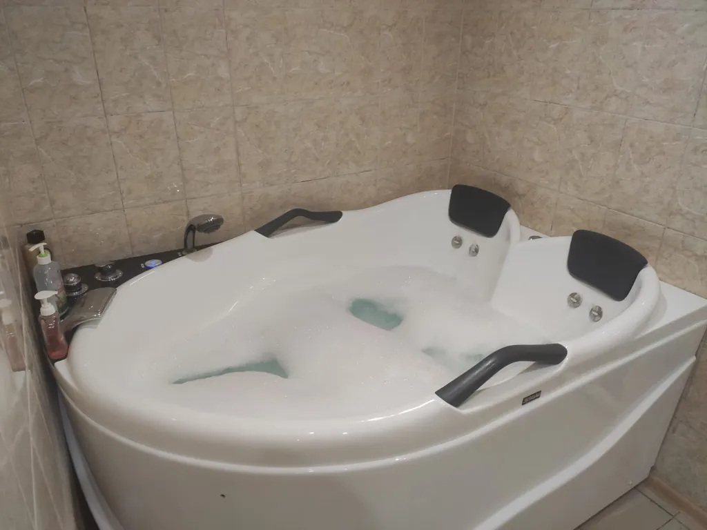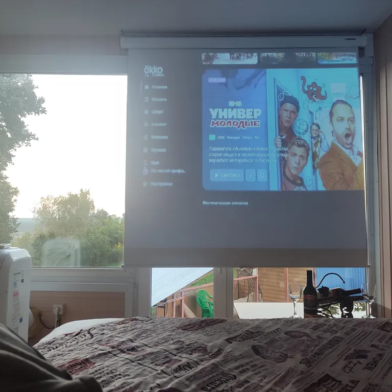 - А также современная акустическая система с караоке, андроид-ТВ с большим экраном с подпиской «Окко», дополнительно на втором этаже стоит проектор напротив кровати;