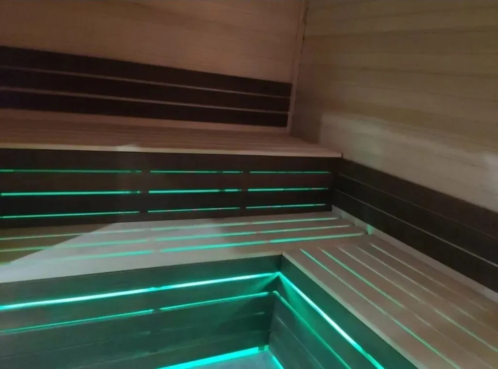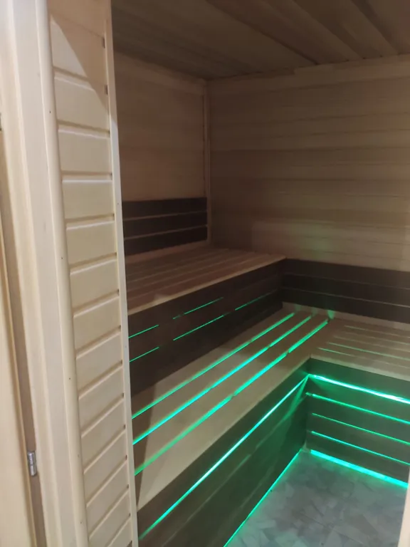 - Зона SPA находится в доме, что мега удобно и супер комфортно. У нас полноценная парная, обшитая канадским кедром и термоабашем (полки) на 6 человек с оборудованием HELO, с точными настройками температуры и т. д., а не просто так, чтобы было + кедровая бочка с парогенератором — очень приятная и полезная SPA-процедура (травы для заправки всегда есть на выбор);