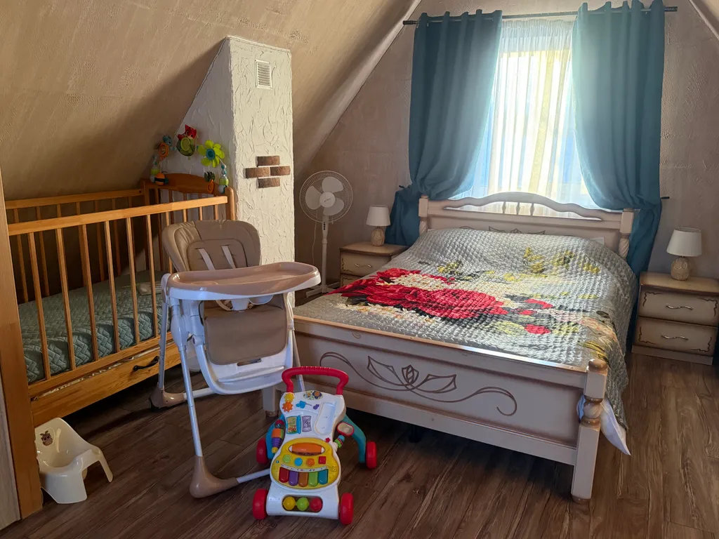 В доме: баня на дровах, ванная, туалет, благоустроенная кухня со всей необходимой техникой и посудой, на мансардном этаже двухспальная кровать, две односпальные кровати для детей до 16 лет и кроватка для малыша. Постельное бельё и полотенца предоставляются.