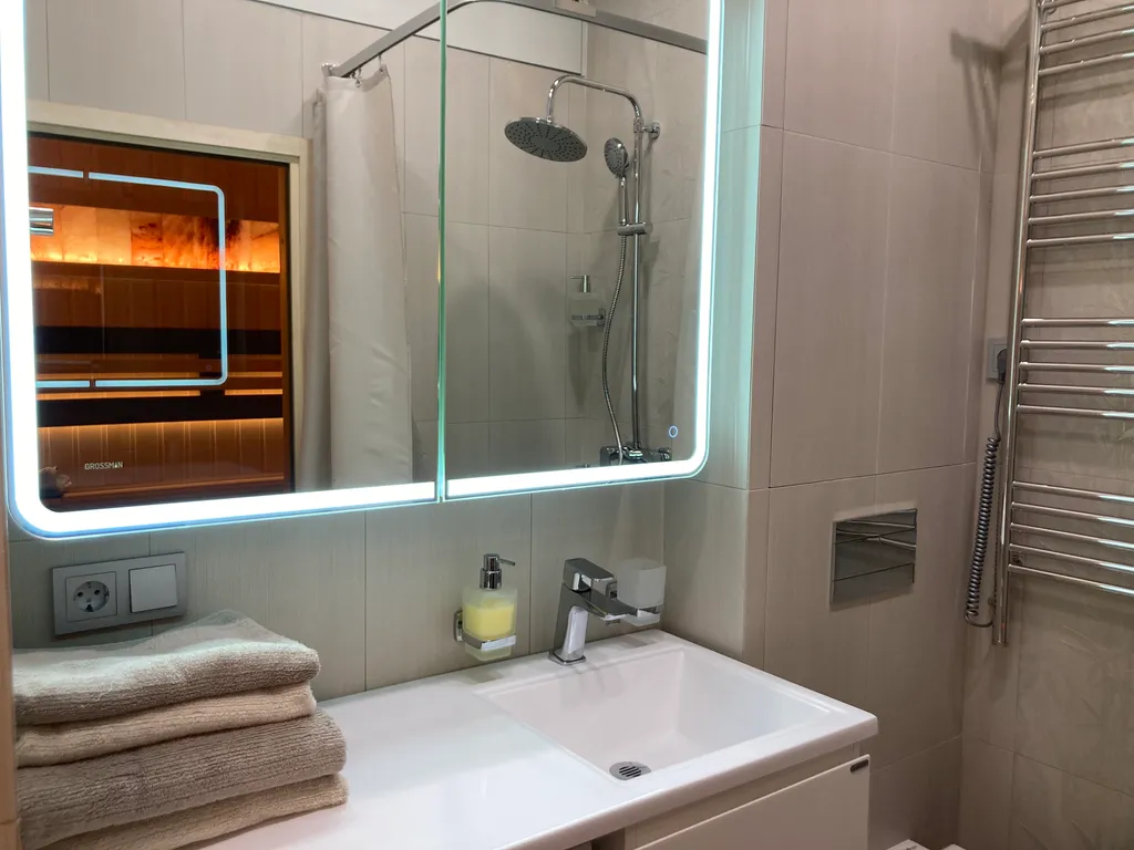 Номерной фонд представлен тремя светлыми и просторными категориями, выполненными в современном стиле. Каждая из них оснащена эргономичной мебелью, кондиционером, шкафом, звукоизоляцией, рабочим столом, сейфом и телевизором. В собственной ванной комнате также есть всё необходимое для комфорта и удобства гостей, а именно: фен, стиральная машина, тапочки и гигиенические принадлежности. Самое главное отличие данного вида апартаментов от прочих — это наличие собственной сауны.