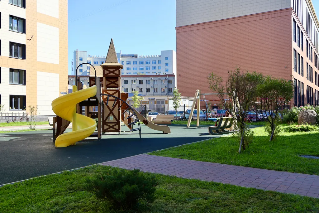 Безопасный двор с детской и спортивной площадкой