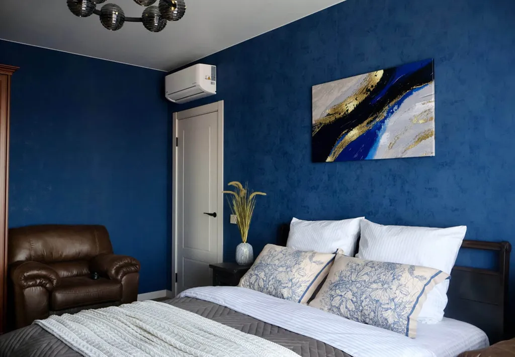 Кондиционер, стильный диван и уютный уголок для чтения создают идеальное пространство для релаксации
