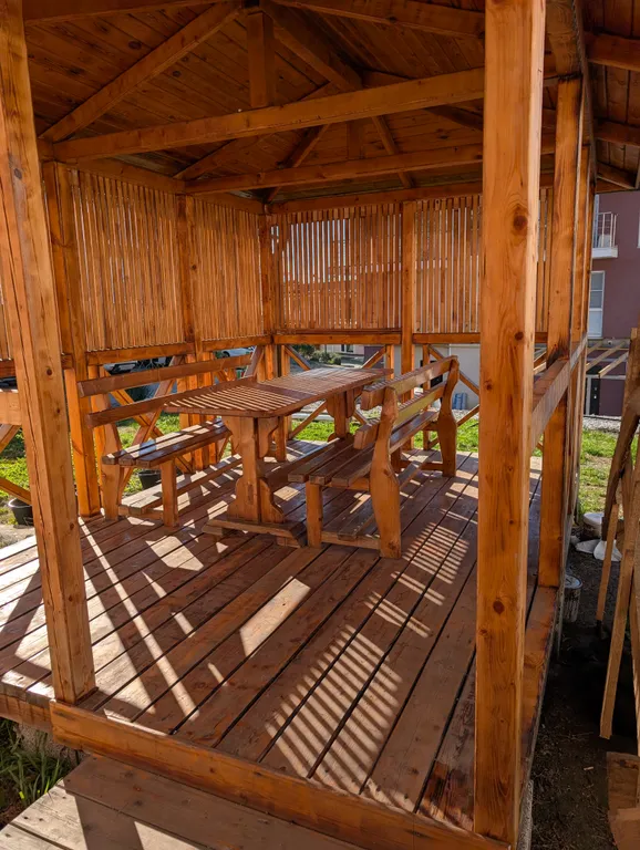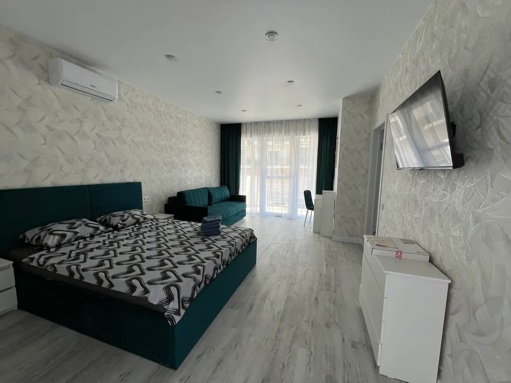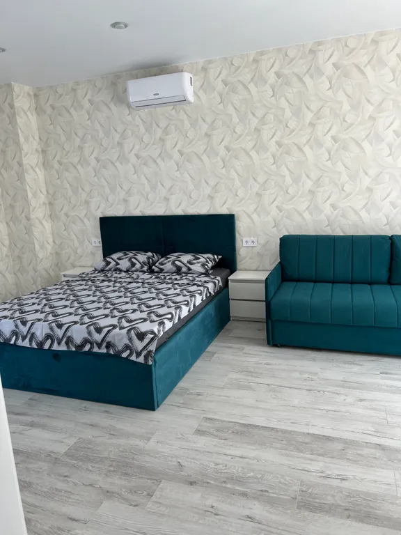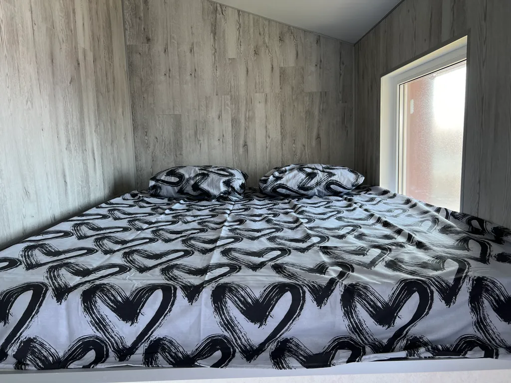 2 этаж спальня (2х спальная кровать и диван), санузел с душевой, большой балкон с креслами и чайным столиком.