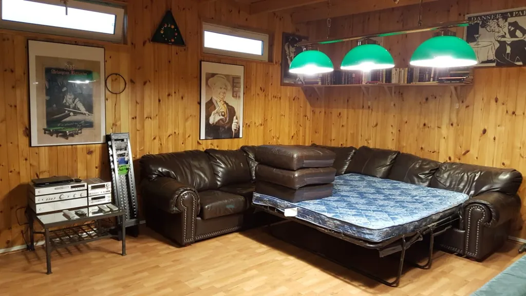 В доме две спальни (одна из них проходная) с двуспальными кроватями, раскладной диван в бильярдной, велотренажер, русский бильярд, 5-футовый кикер, электронный дартс, настольные игры — мафия, лото, нарды, шахматы, домино, крокодил, лото, игровая приставка PS3 с играми, Wi-Fi, TV, полотенца, постельное бельё; три кровати для детей: 1. кровать до 5-6 лет, 2. выдвижная кровать для подростка, 3. по запросу кроватка до 3 лет, стульчик для кормления, детские игрушки и книжки, радионяня, белый шум, складной коврик, ванночка для купания, горшок, пазлы.