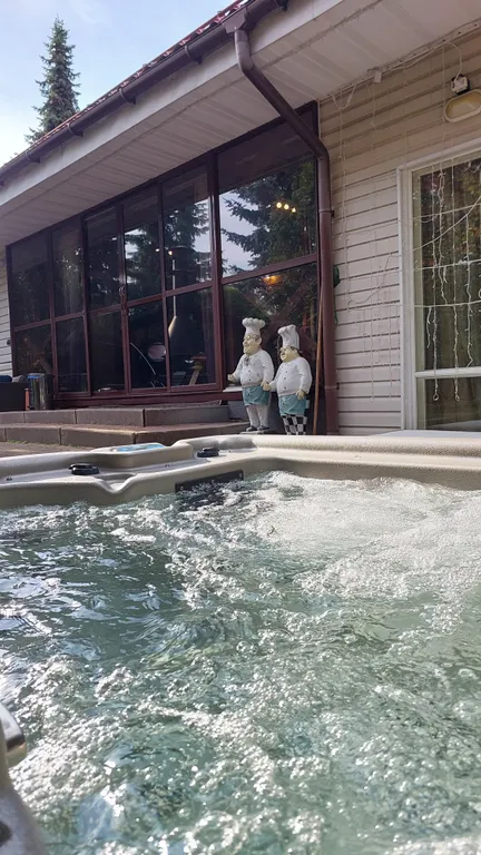 На улице американский спа-бассейн «Viking Spa Aurora III» (уличный джакузи) с гидромассажем, автоматическим подогревом воды 36-38С, фильтрацией, озонацией и подсветкой, 6 т. в сутки. Подготовка спа-бассейна занимает некоторое время, поэтому сообщите при бронировании о вашем желании пользоваться спа-бассейном.