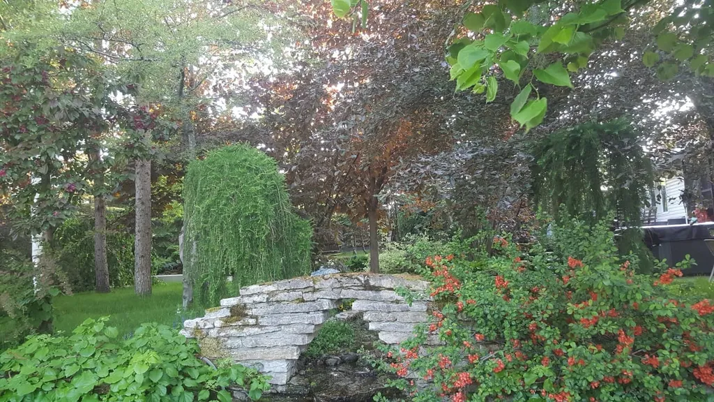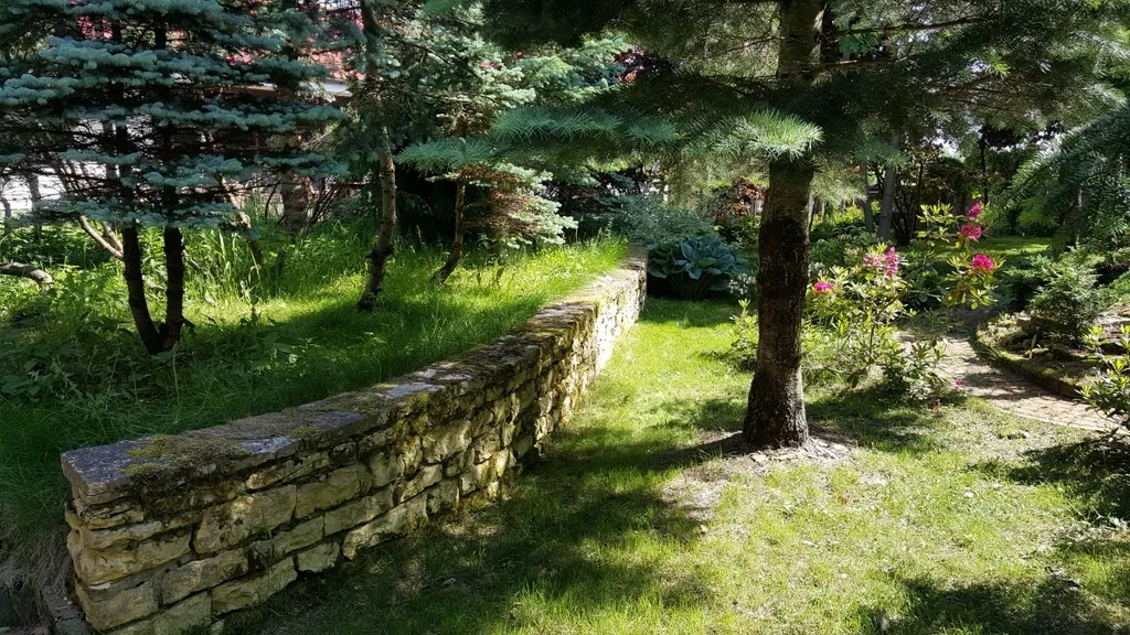 На улице ротанговый диван, шезлонг, обеденный стол с креслами, очаг, батут, 2-местное подвесное кресло-кокон, теннисный стол, бадминтон, песочница с игрушками и круглыми подвесными качелями, самокат, деревянные качели. На территории ландшафт в стиле французский сад, декоративный ручей, альпийская горка, много редких декоративных деревьев и кустарников, парковка для 3 автомобилей.