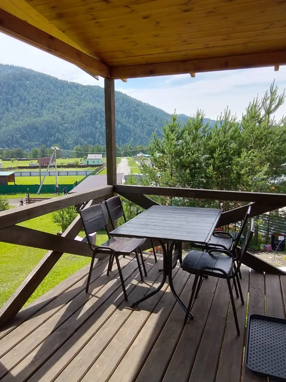 Обеденная зона (стол и 4 стула) в доме и на террасе