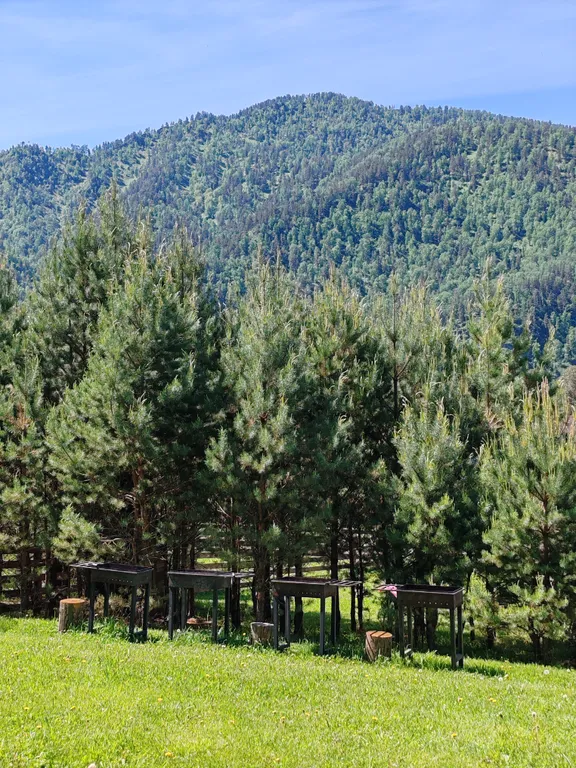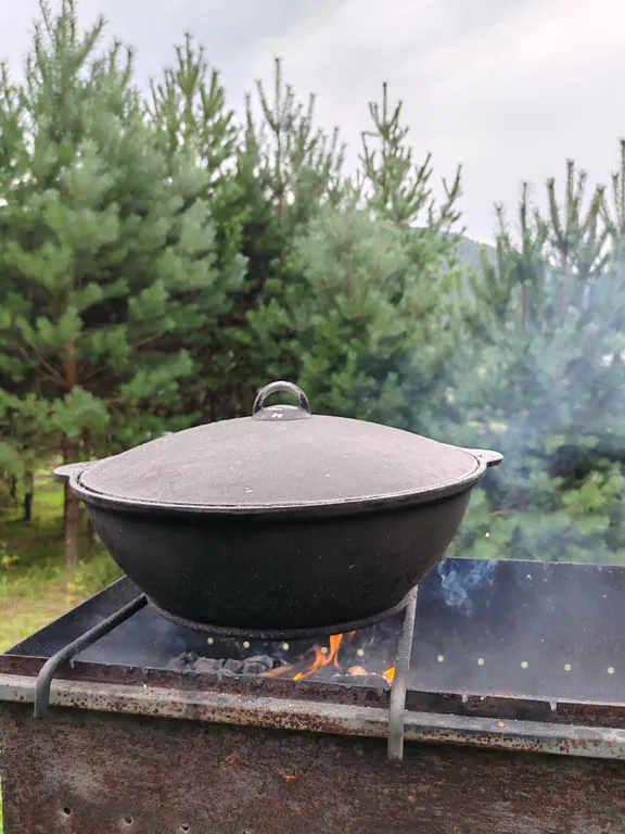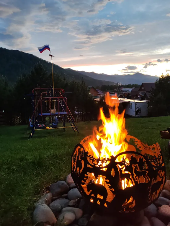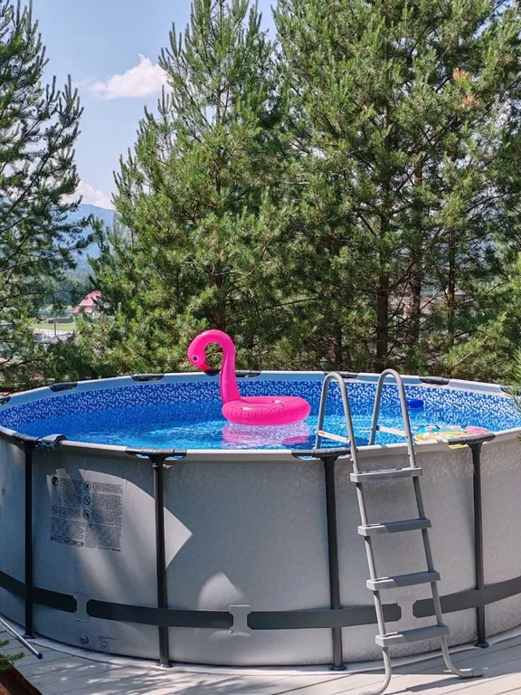 На территории усадьбы 4 дома, закрытая парковка, качели, детская площадка, песочница, батут, зона для курения, мангальная зона (решетка, казан предоставляются), костровая чаша, видеонаблюдение, каркасный бассейн.