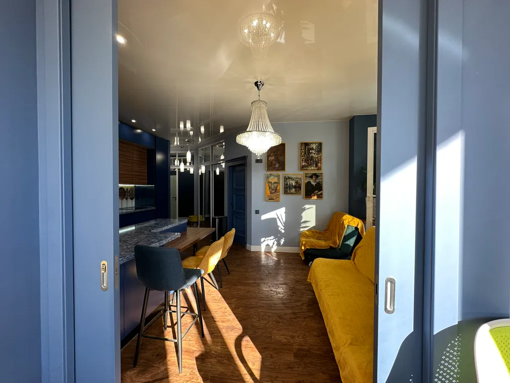 Пройдя через входную зону, вы оказываетесь в просторной кухне-гостиной, наполненной светом. Здесь начинается ваше путешествие по уникальному пространству, где царит свобода и лёгкость.
