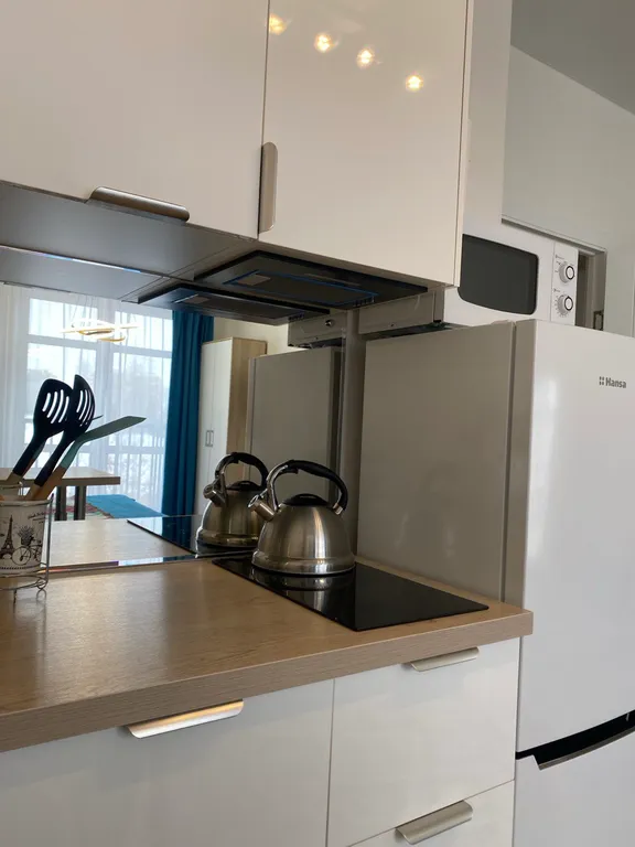 - Кухня оборудованная всем необходимым: холодильник, плита, чайник, посуда, столовые приборы, посудомоечная машина