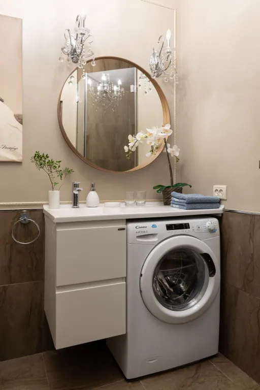 — полностью оборудованная кухня (индукционная варочная панель, духовка, электрочайник, микроволновка, холодильник, посудомоечная машина, кофеварка, тостер, блендер, соковыжималка-пресс для цитрусовых)