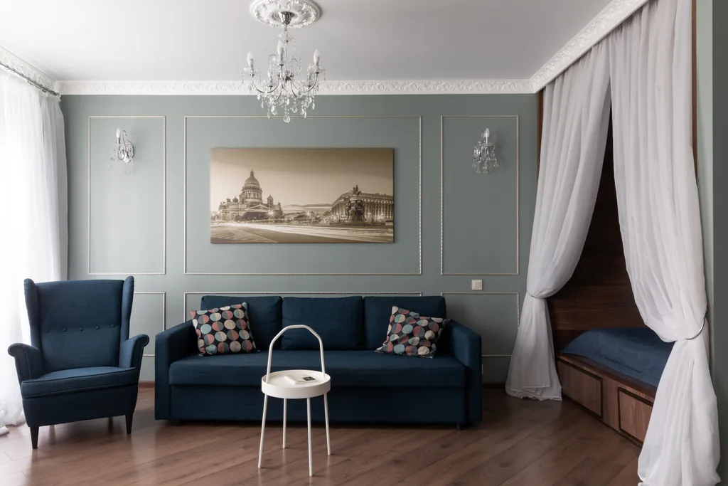 Спальные места: двуспальная кровать и диван-кровать.