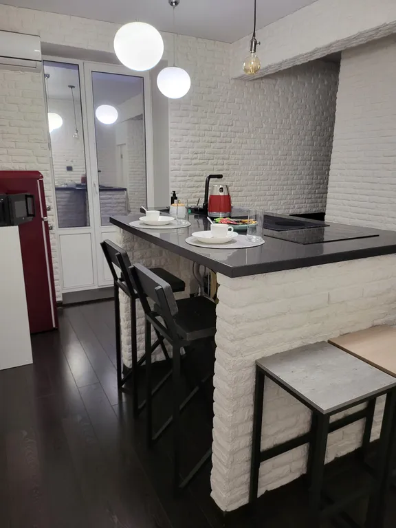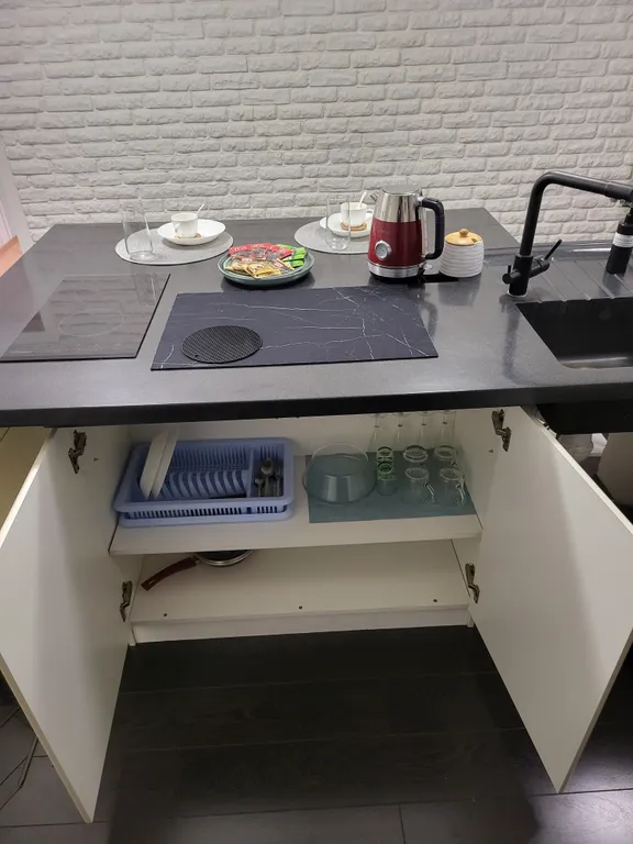 Быт: Полностью экипированная кухня (холодильник, плита, СВЧ, чайник, посуда) — готовьте с удовольствием.