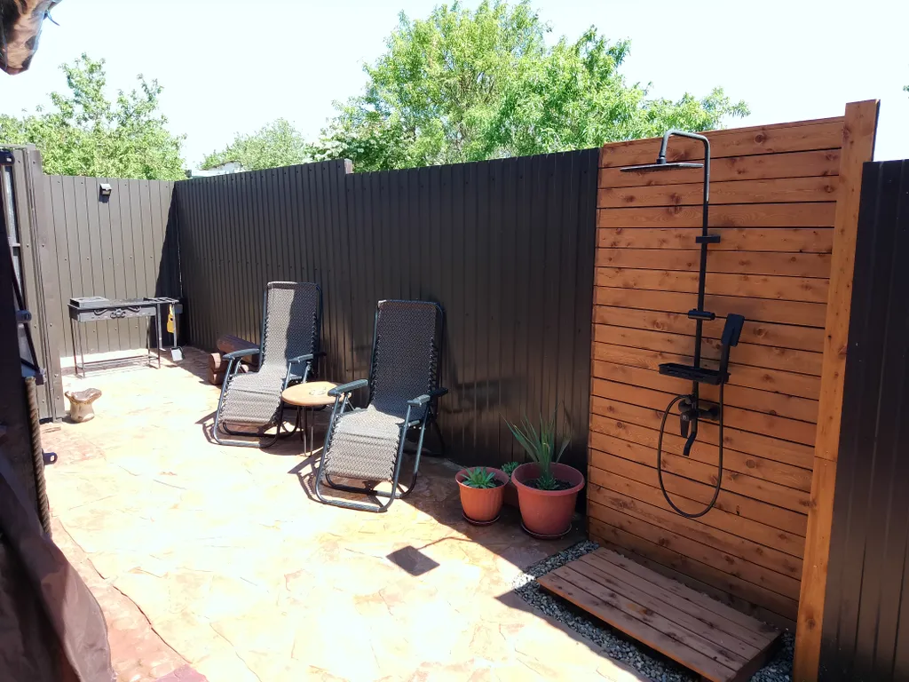 Дом вместимостью 4 человека, все комнаты изолированы, большая кухня-гостиная, удобные спальни, просторная веранда и уютный дворик.