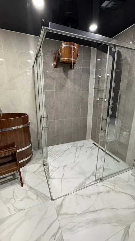- Спа-зона: русская баня на дровах, внутренний подогреваемый бассейн с температурой воды 25-27 градусов, купель, душевая с холодным обливанием
