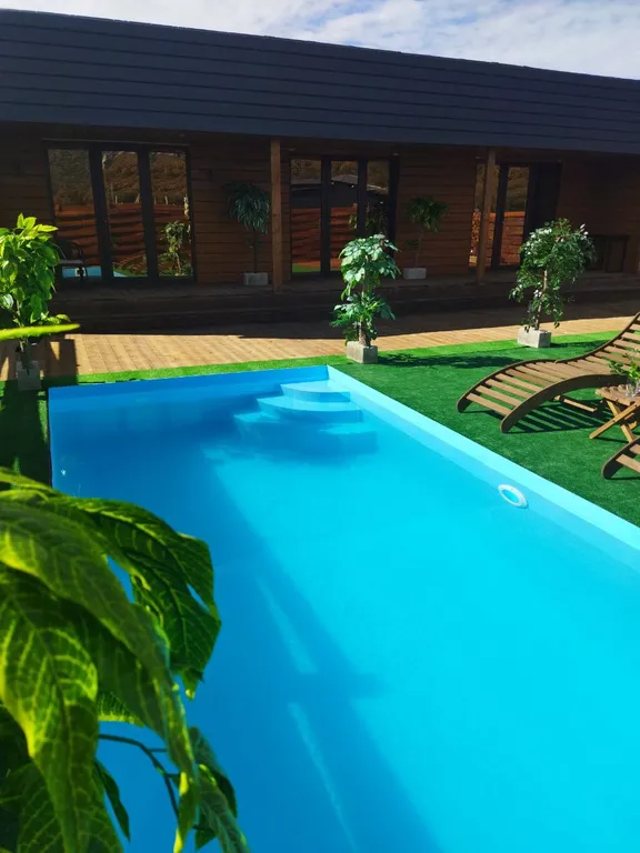 В распоряжении наших гостей индивидуальный большой бассейн под открытым небом, с вечерней подсветкой и круглогодичным подогревом. Температура воды в бассейне+36-38 градусов. Открыт для купания с 09-00 до 22-00 часов.