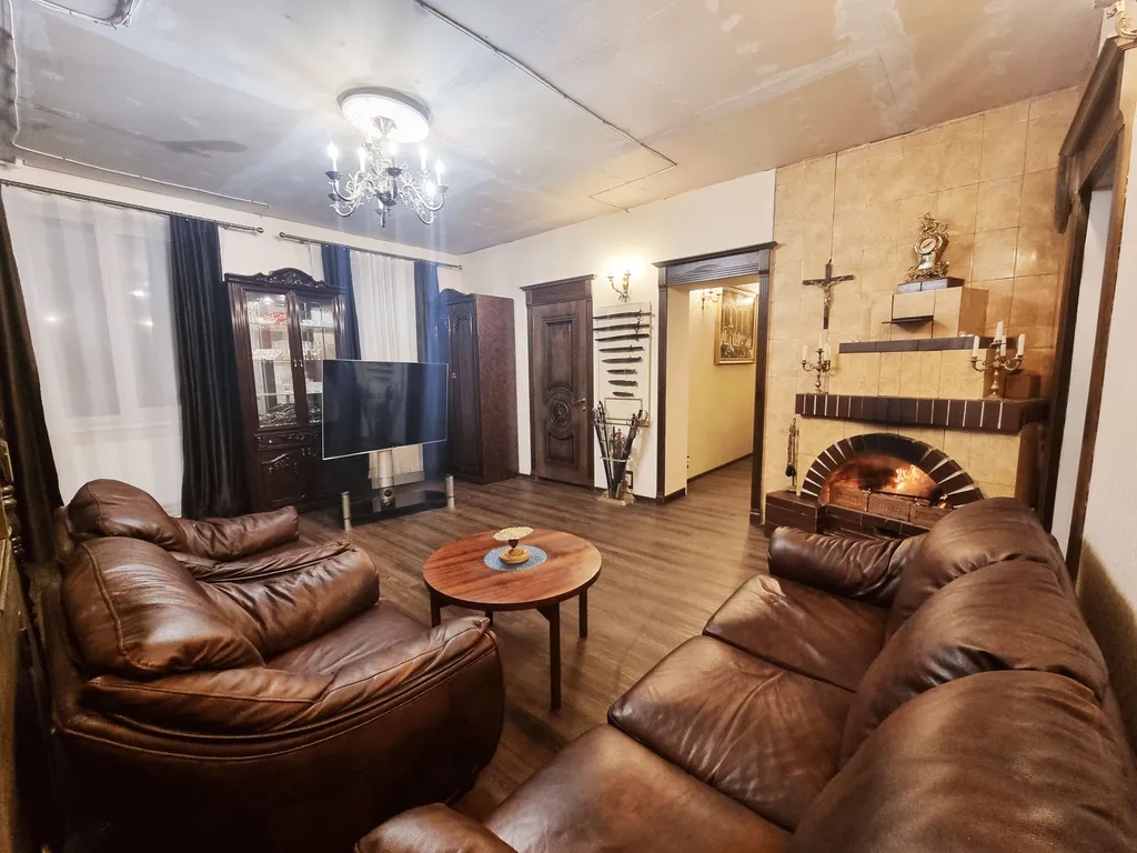 - Гостиная с уютным камином на дровах