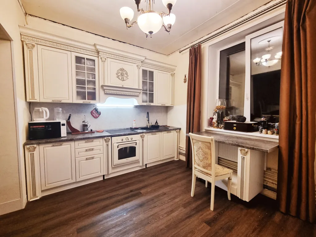 - Кухня: электрическая плита, микроволновка, чайник, посуда, духовой шкаф, холодильник