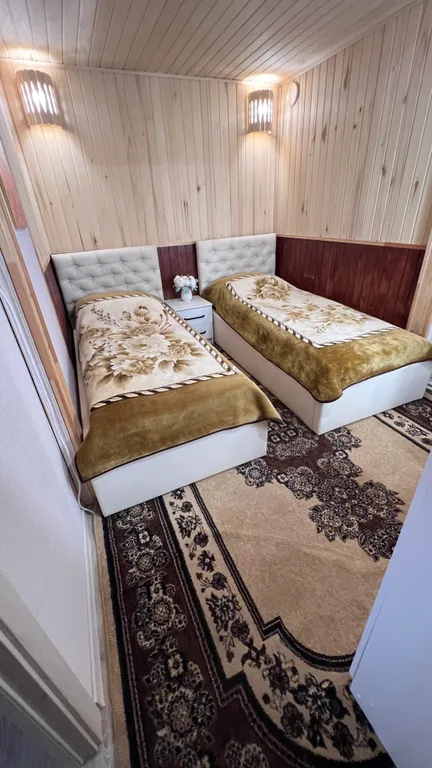 Стоимость указана на 2 человека каждый следующий по 1000к. Дети до 3 лет бесплатно, в доме 3 небольшие изолированные спальни, 6 спальных мест , (ещё 4-и дополнительных спальных мест, диваны раскладные кухня-гостиная).