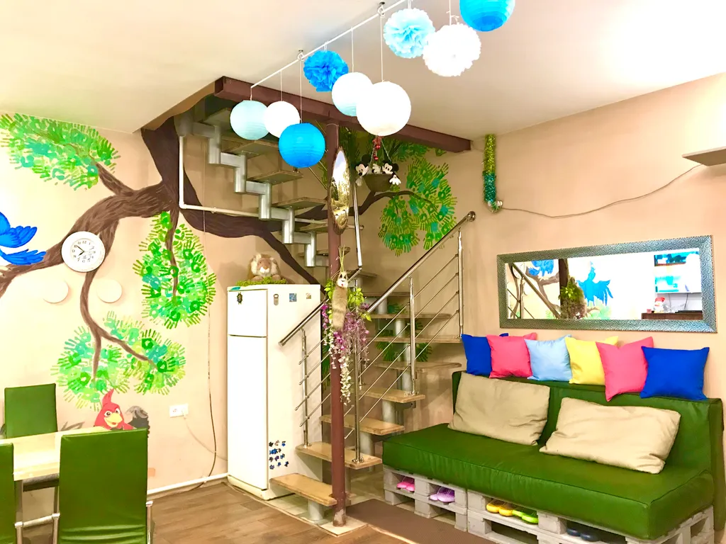 Гостиная-кухня с TV, караоке, большим столом и фортепиано Кухонный гарнитур со всей необходимой техникой и посудой, есть (соль, сахар, специи и чай). Для всех тапочки (проходят санобработку каждое заселение) есть и одноразовые по желанию.