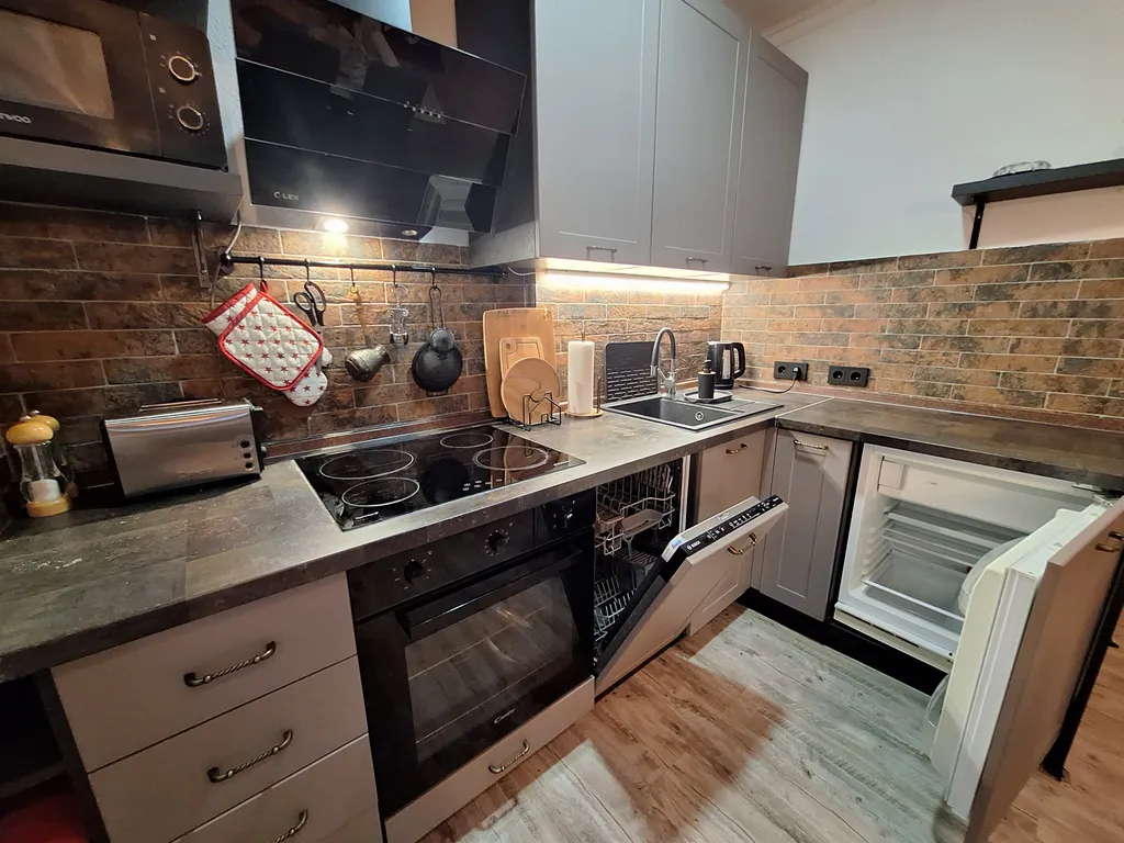 В кухне имеется всё необходимое для приготовления пищи: