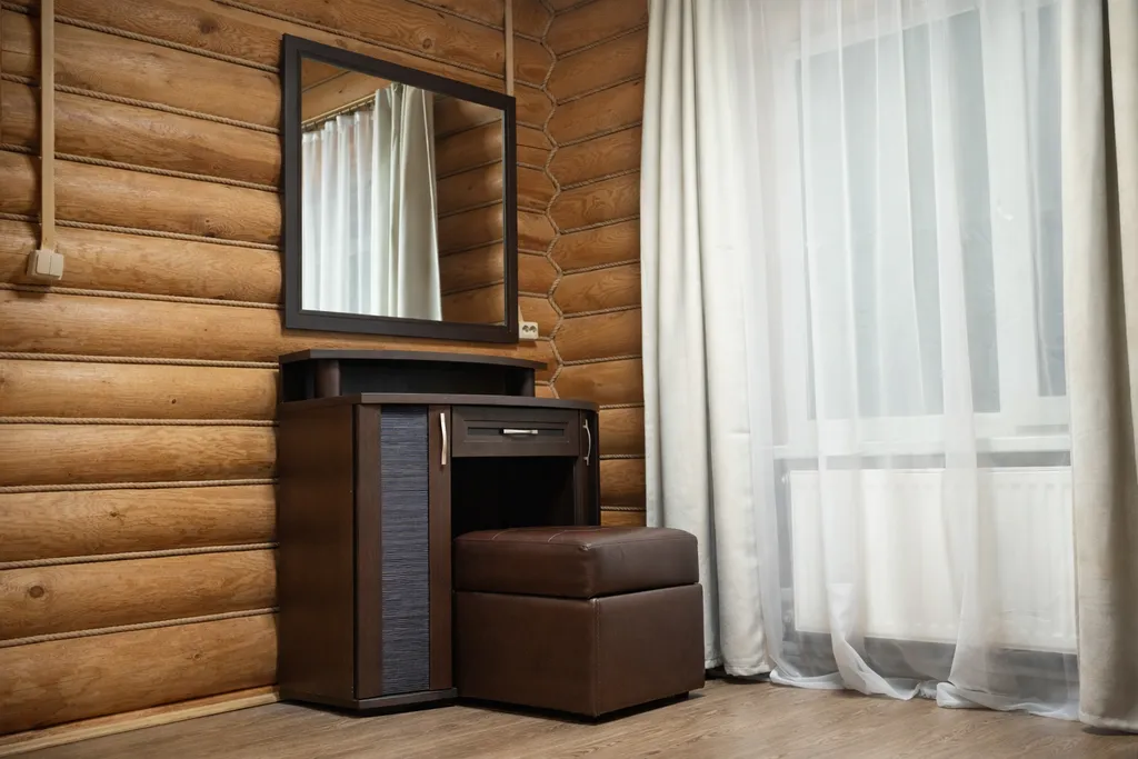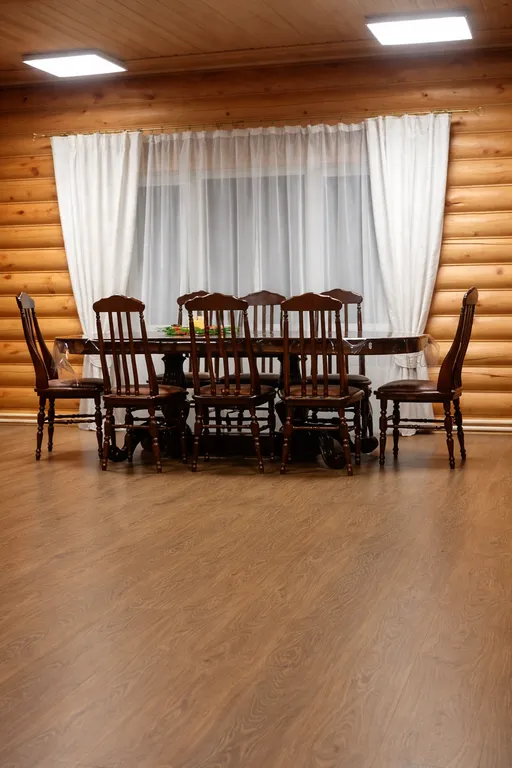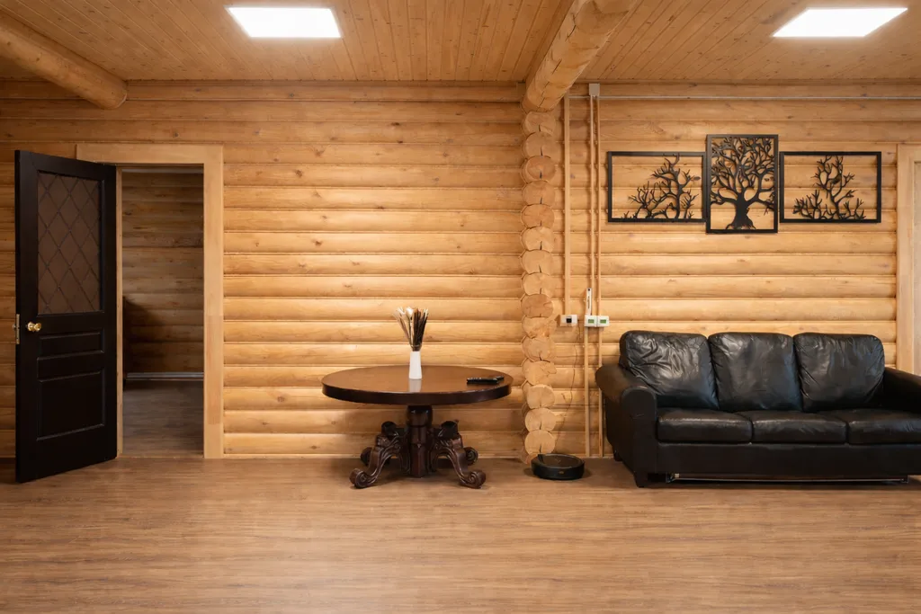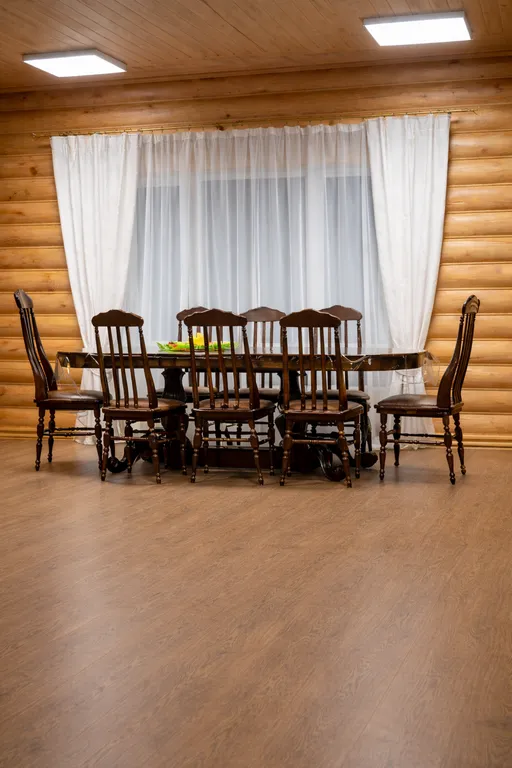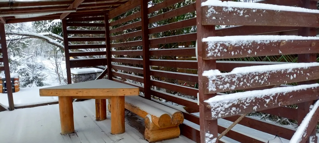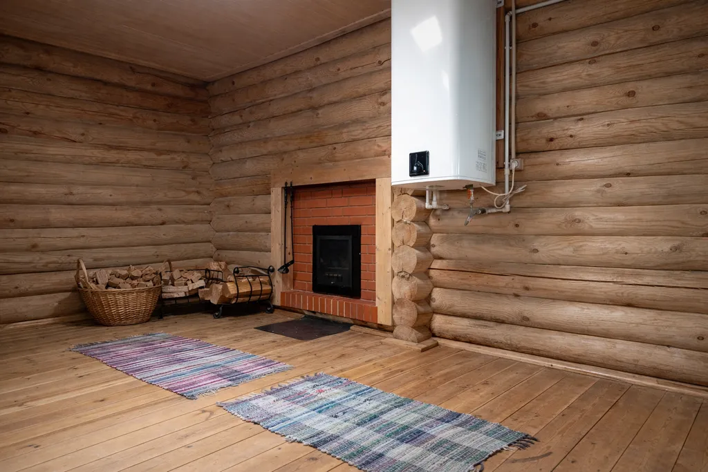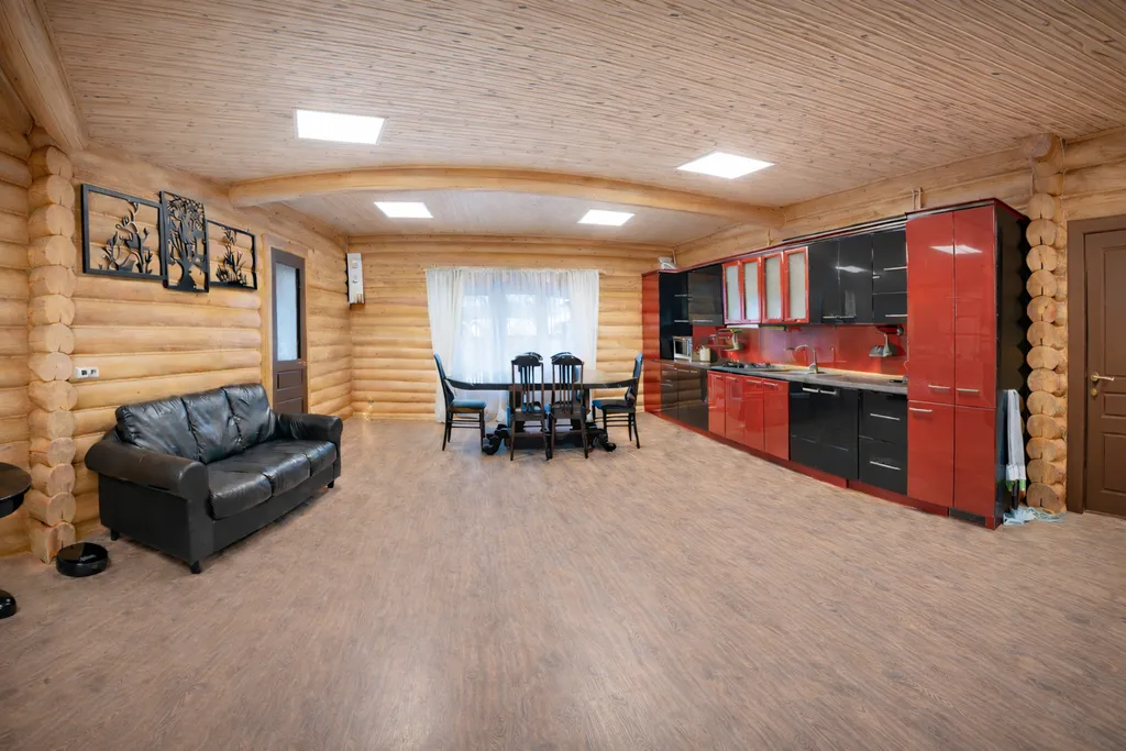 Наш дом построен из оцилиндрованного бревна — он тёплый и уютный, идеально подходит для отдыха в любое время года.