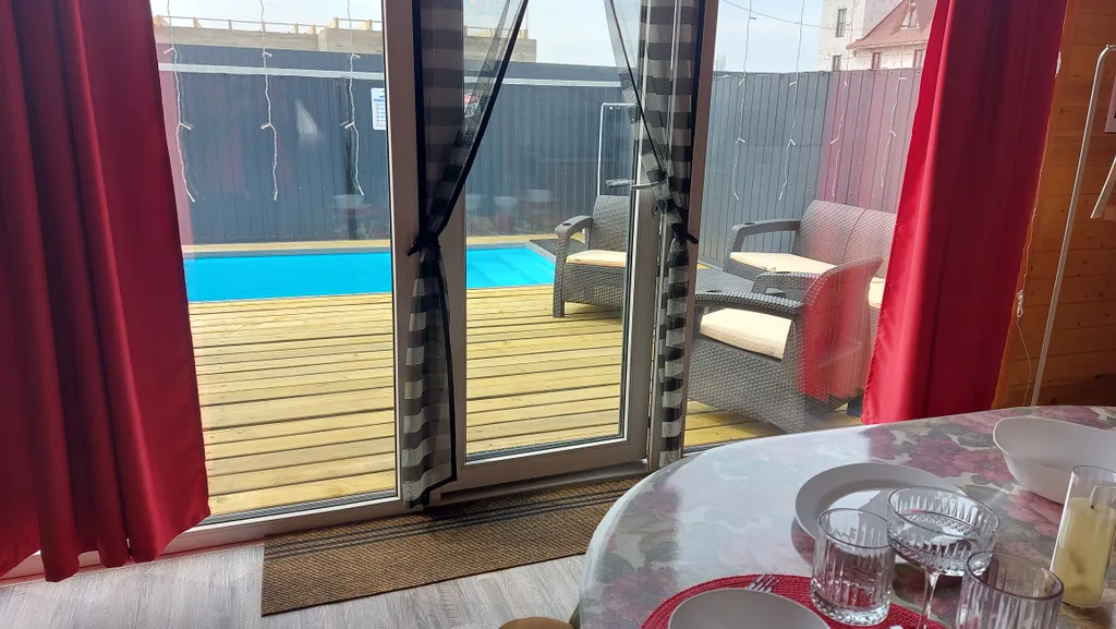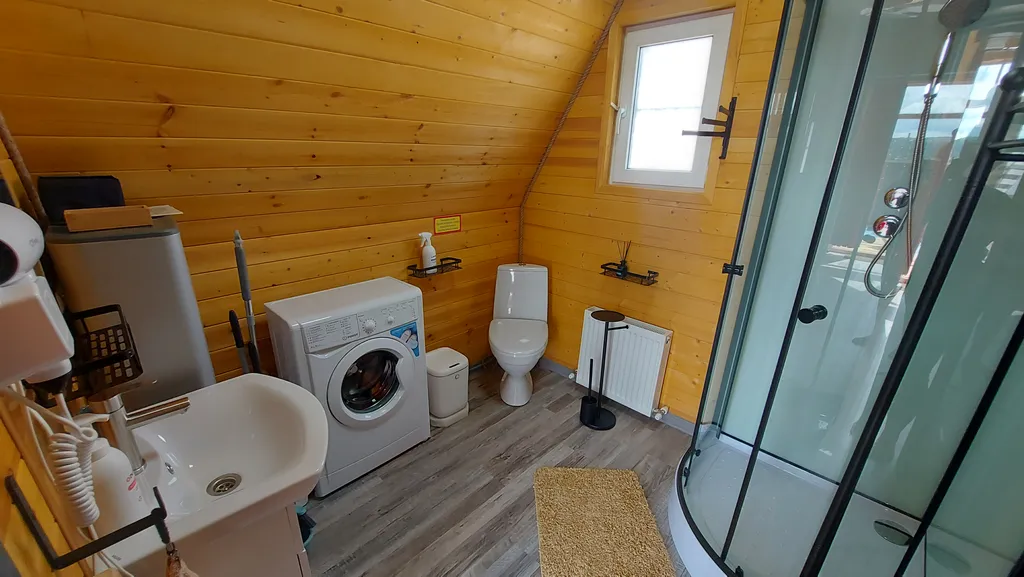 В домике находится всё для комфортного проживания: холодильник, водонагреватель, телевизор, Wi-Fi, микроволновка, посуда (тарелки, кружки, бокалы, стаканы) и столовые приборы, рассчитанные на 6 гостей, 2 кастрюли, 2 сковороды, чайник электрический, заварочный чайник, чай пакетированный, сахар, соль, чай горный (с описанием трав), растительное масло подсолнечника (местных производителей), салфетки, бумажные полотенца, туалетная бумага, штопор, разделочные доски.