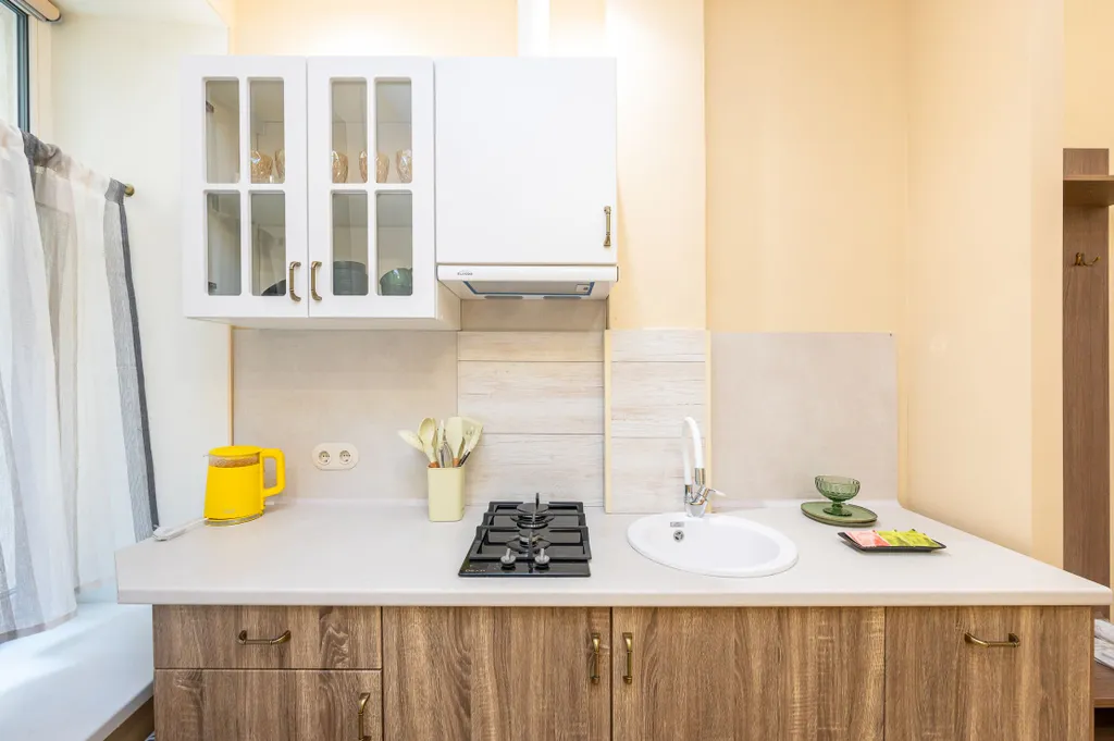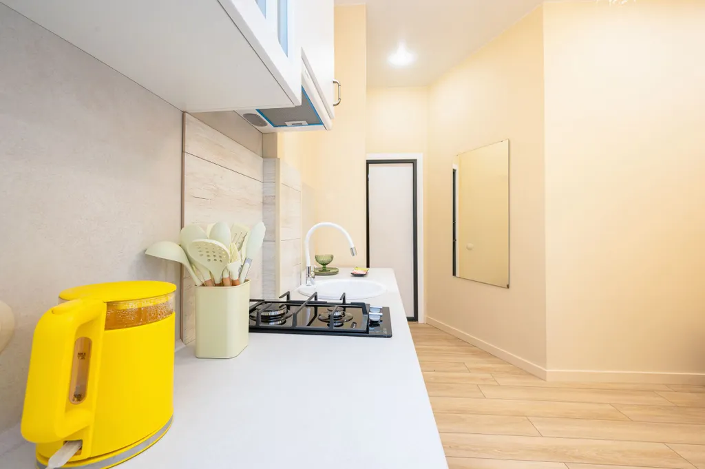 В квартире две раздельные комнаты: спальня и кухня-гостиная