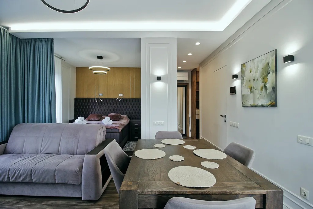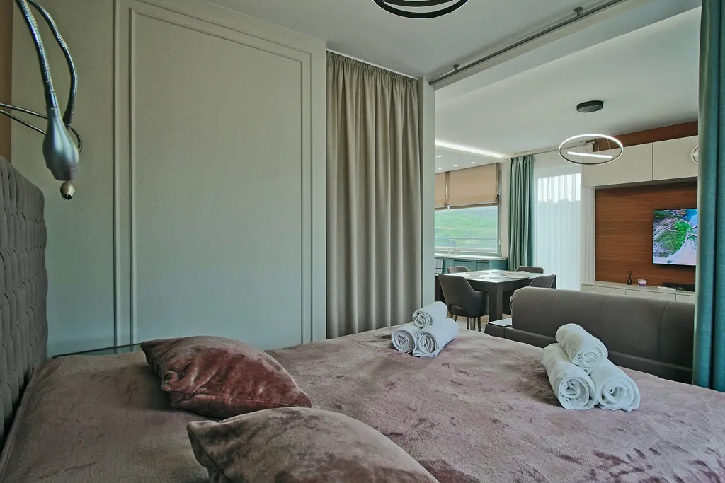 - Дополнительные удобства: кондиционер, фен, утюг, гладильная доска, сушилка, Wi-Fi, SMART TV