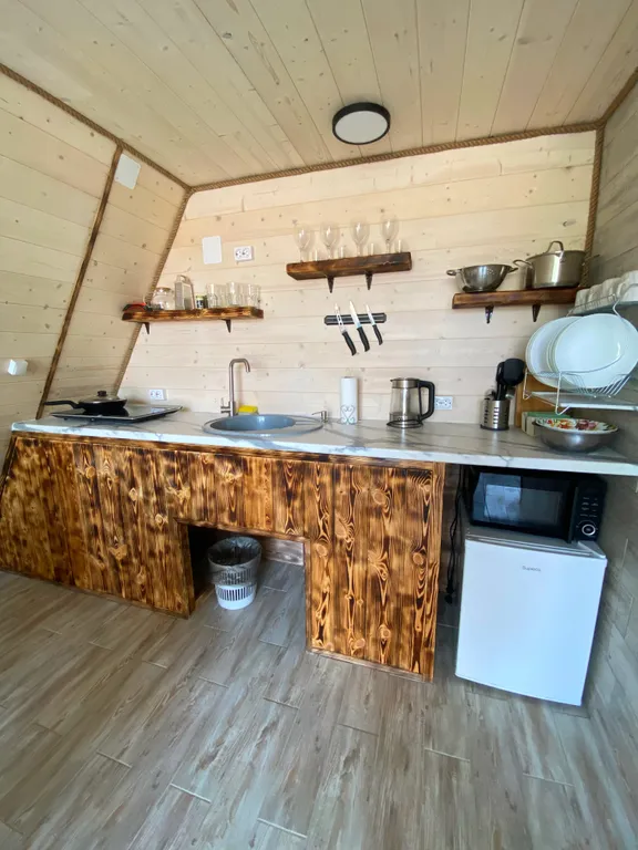 В каждом доме есть отдельная кухня и санузел. Мы готовы принять от 2 до 5 гостей в один дом!