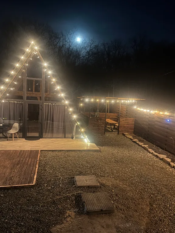 Дорогие гости у А-фрейма своя закрытая территория парковка, беседка, мангальная зона все внутри теплый пол придает большой комфорт особенно маленьким детям!