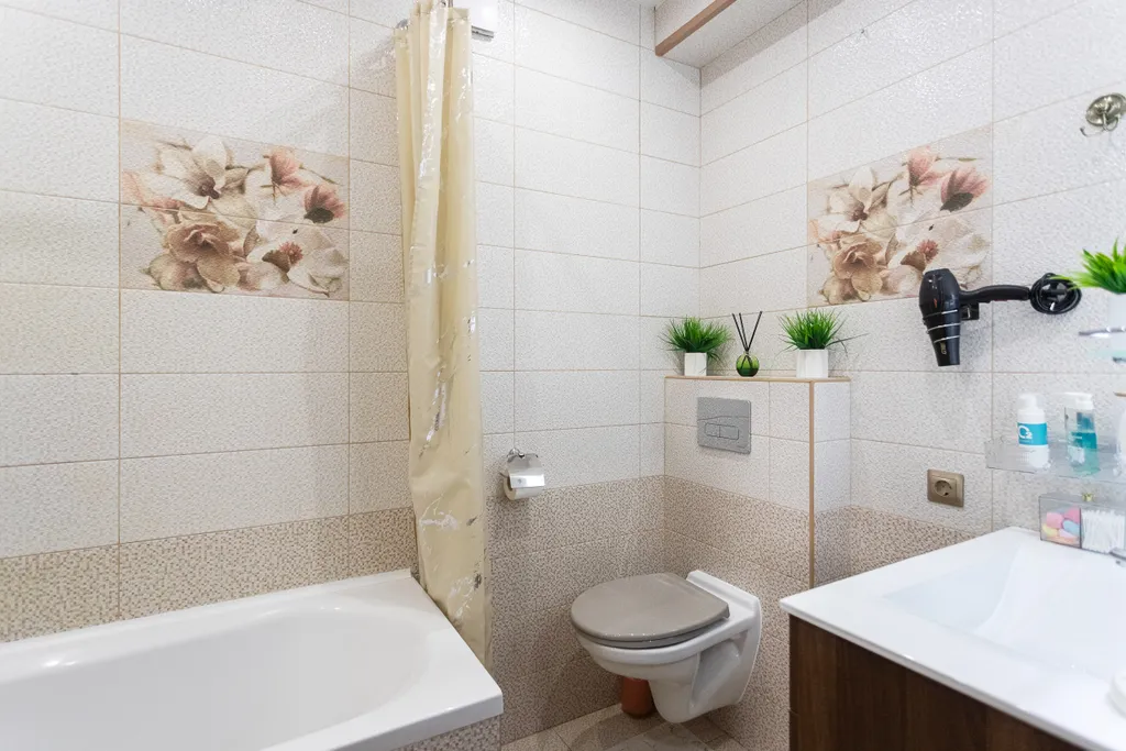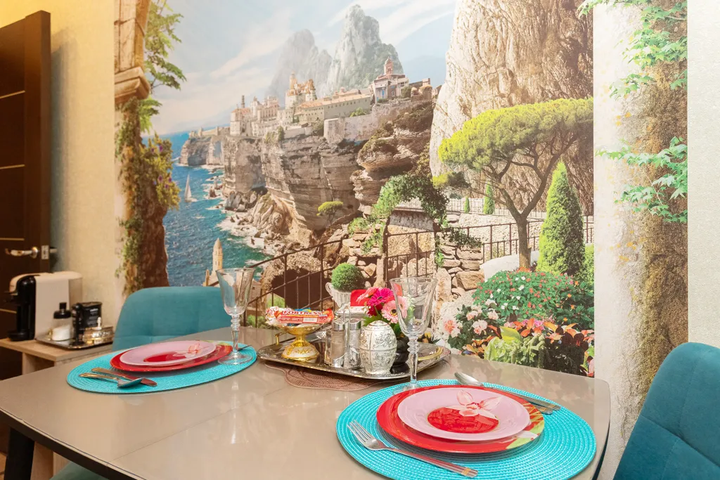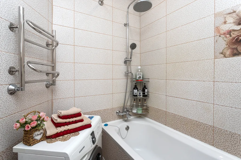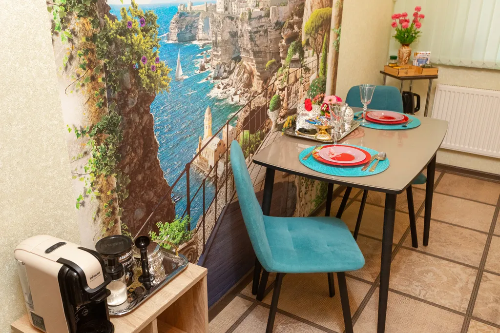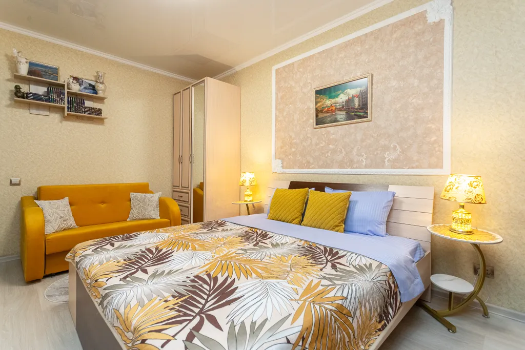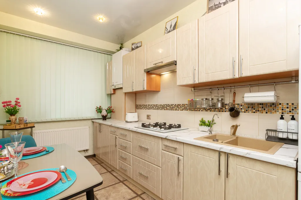 Апартаменты оснащены всем необходимым для комфортного проживания. Новая мебель, огромная 2-спальная кровать с ортопедическим матрасом, раскладной 1,5-спальный диван, шкаф, туалетный столик, журнальный и много приятных мелочей. Кондиционер. Кухня оснащена посудомоечной машиной, духовкой, микроволновой печью, кофемашиной, тостером, множеством бытовой техники, новая посуда, кофе-чайные принадлежности. В апартаментах предоставляется постельные принадлежности, 3 комплекта полотенец, всевозможные гигиенические средства, тапочки, халаты. Туалетная комната оснащена ванной с тропическим душем, стиральной машиной.
