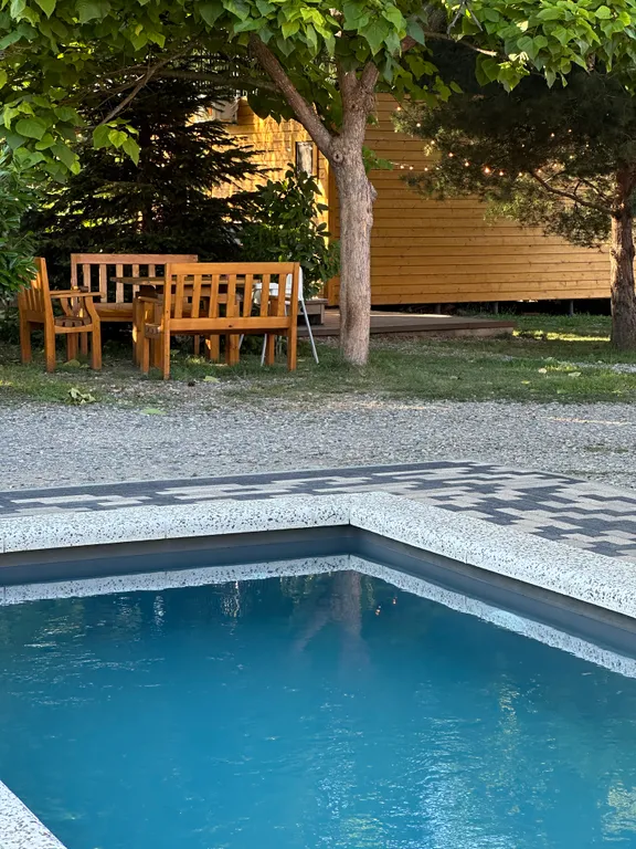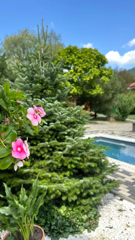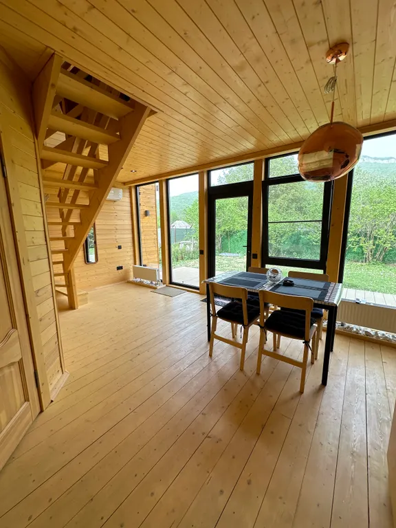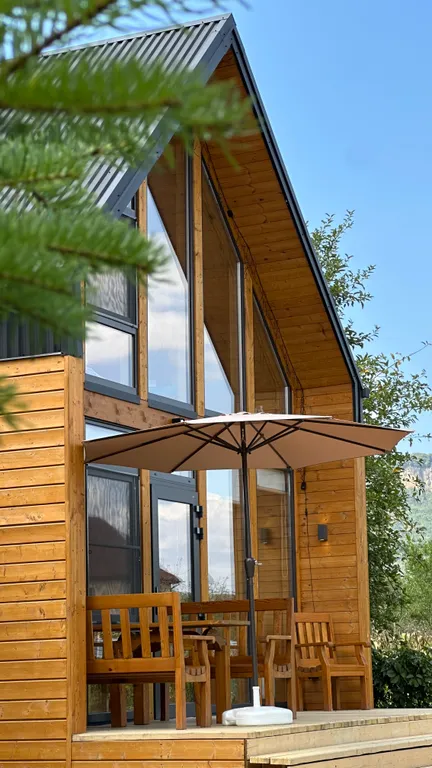 Дом расположен на ухоженной территории с видом на горы. Здесь легко замедлиться, выдохнуть и провести время без суеты.
