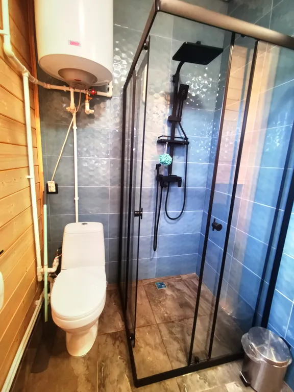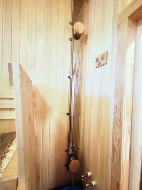 При 8-ми местном размещении дополнительно к дому в аренду предоставляется гостевая комната в бане, в которой также имеются все необходимые удобства для комфортного проживания: отдельная комната с раскладным диваном, комод, стол, тв, чайник, санузел с душевой.