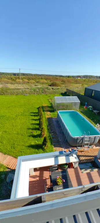 — летний бассейн, просторный двор, терраса с мебелью и качели «кокон».