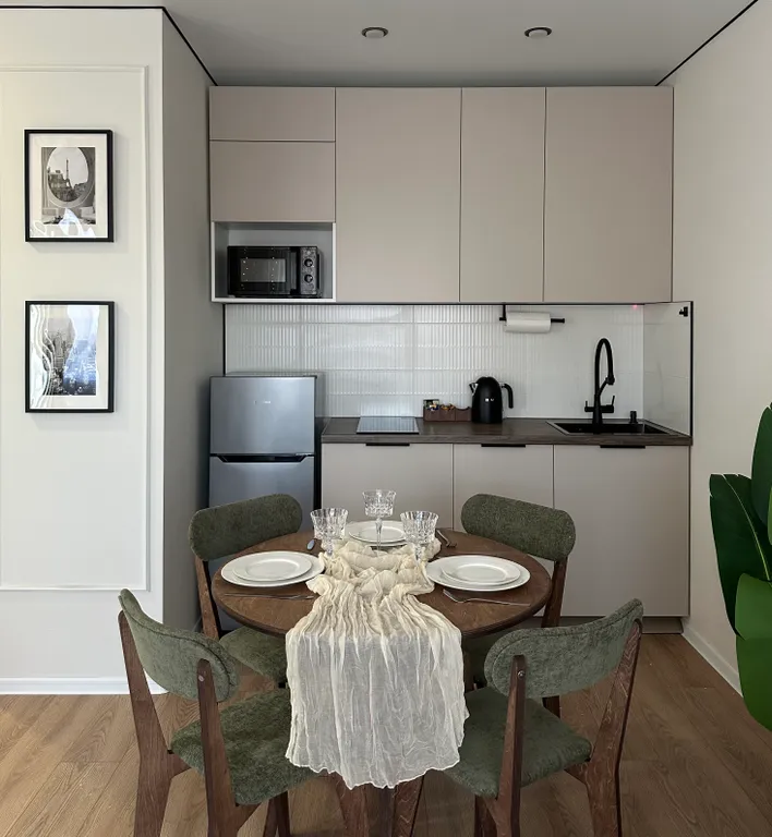 -Вся необходимая посуда для готовки и сервировки (кофе и чай на завтрак)