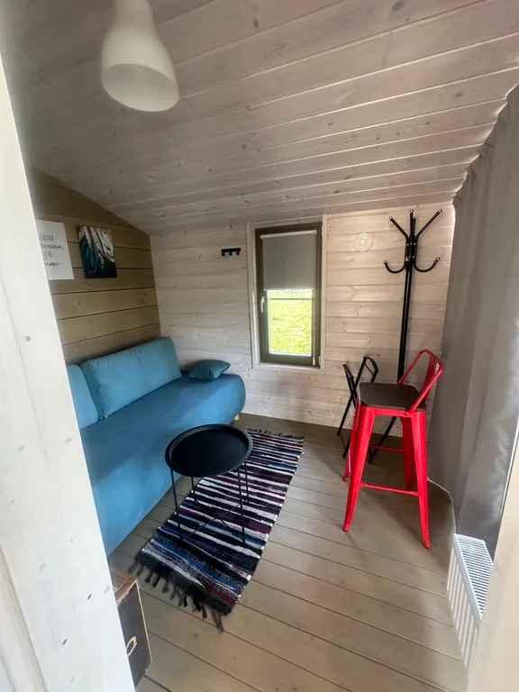 Гостиная зона: с большим диваном (трансформируется в спальное место), телевизором и журнальными столиками, настольные игры.