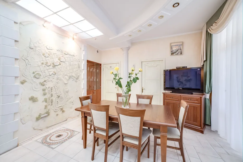 А, кроме того, в апартаментах «Херсонес» расположен прекрасный зимний сад с двухместным диванчиком, мягкими подушками и мебелью из ротанга. Терраса из зимнего сада выходит на внутренний дворик отеля.