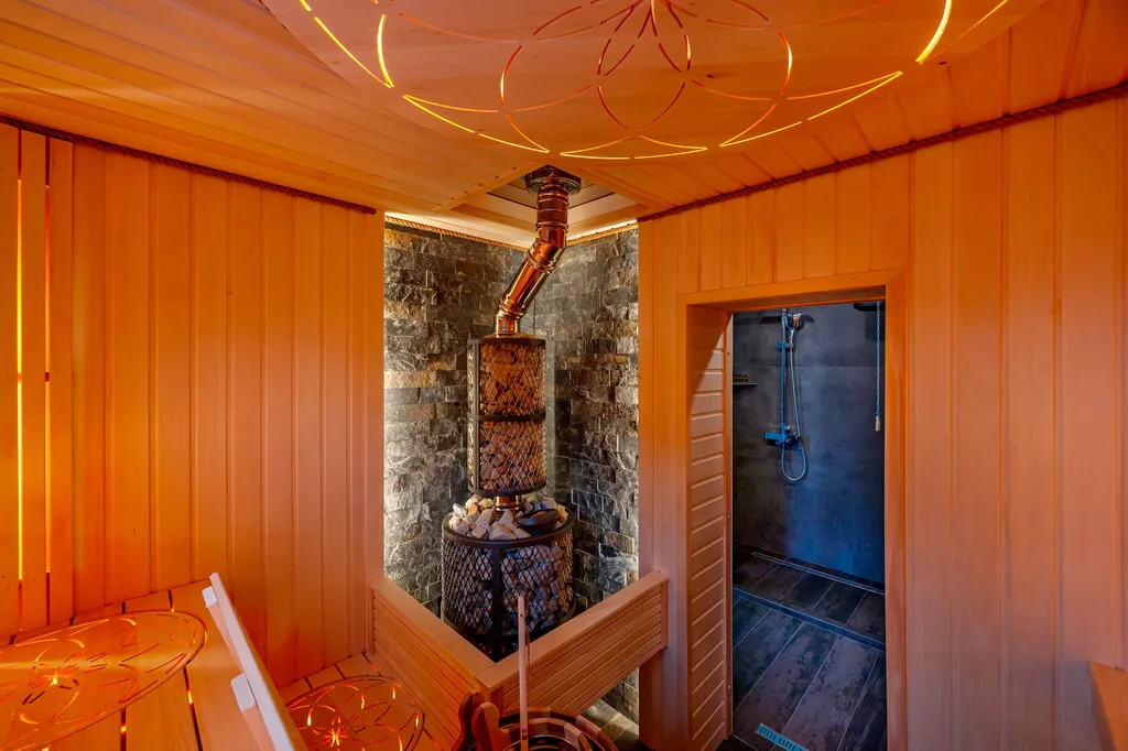 Зона отдыха, парная, комплект мебели (кресла и стол), набор полотенец, халаты.